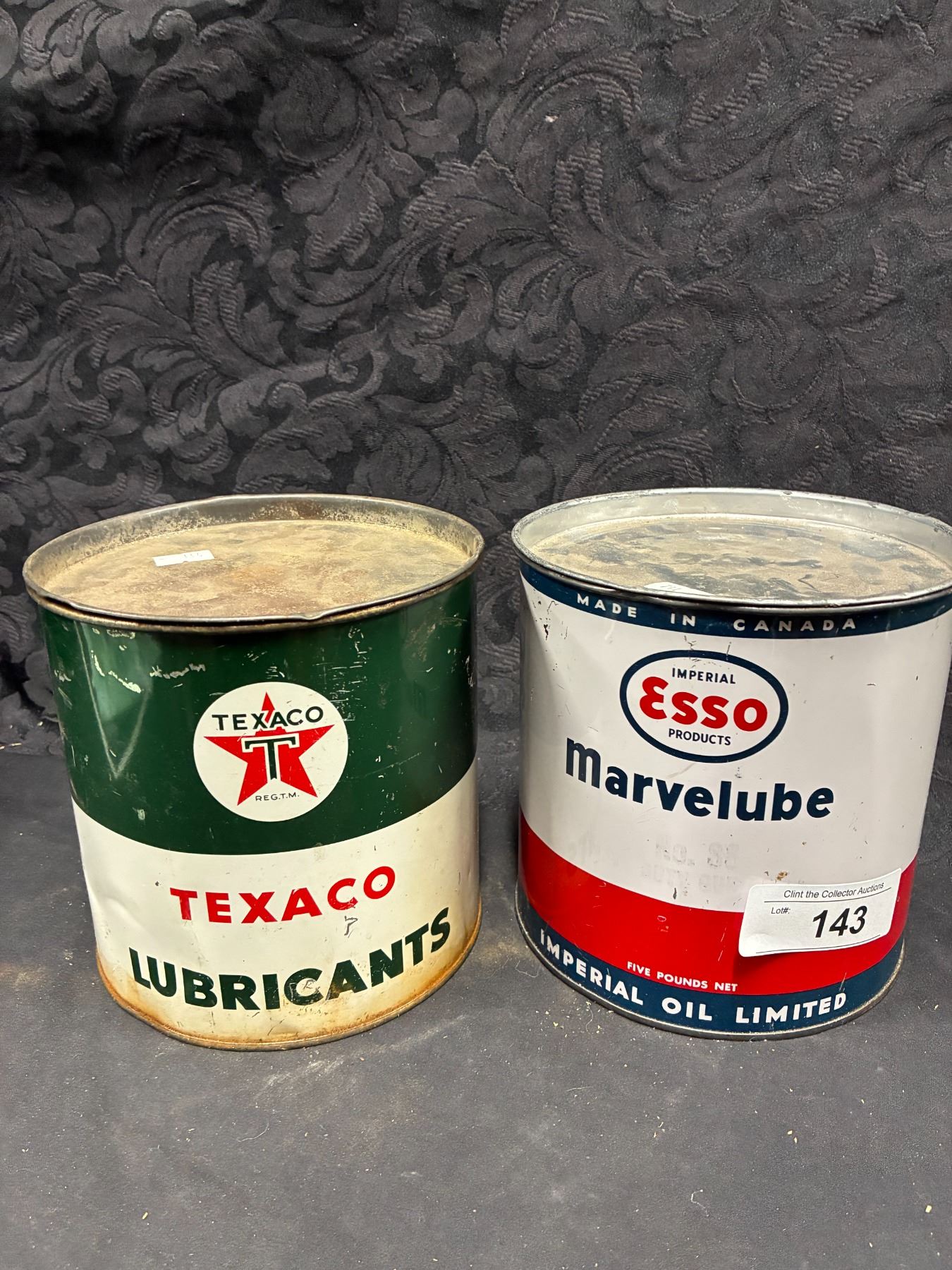 Lot 143 2 Vintage oil cans, Esso and Marvelube, 5lb