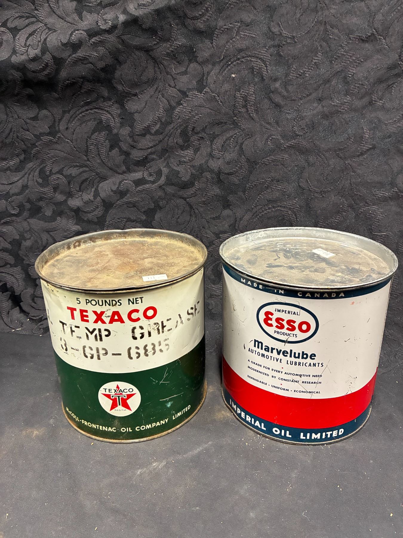 2 Vintage oil cans, Esso and Marvelube, 5lb
