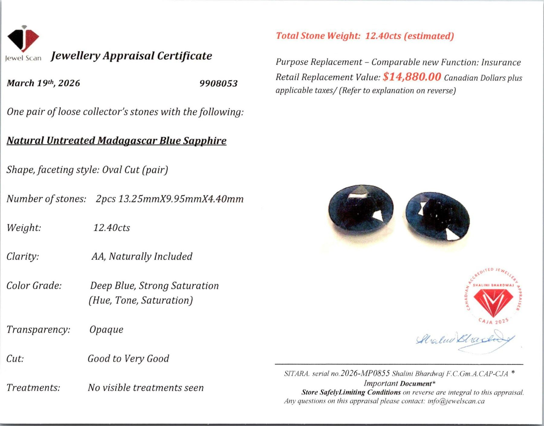 12.4 ct Certified Madagascar Sapphire gemstone Untreated ($14,880 Appraisal)