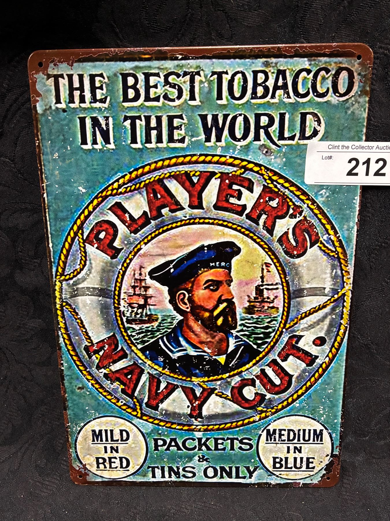 Lot 212 Players navy cut tobacco metal sign, repro, 12"x8"