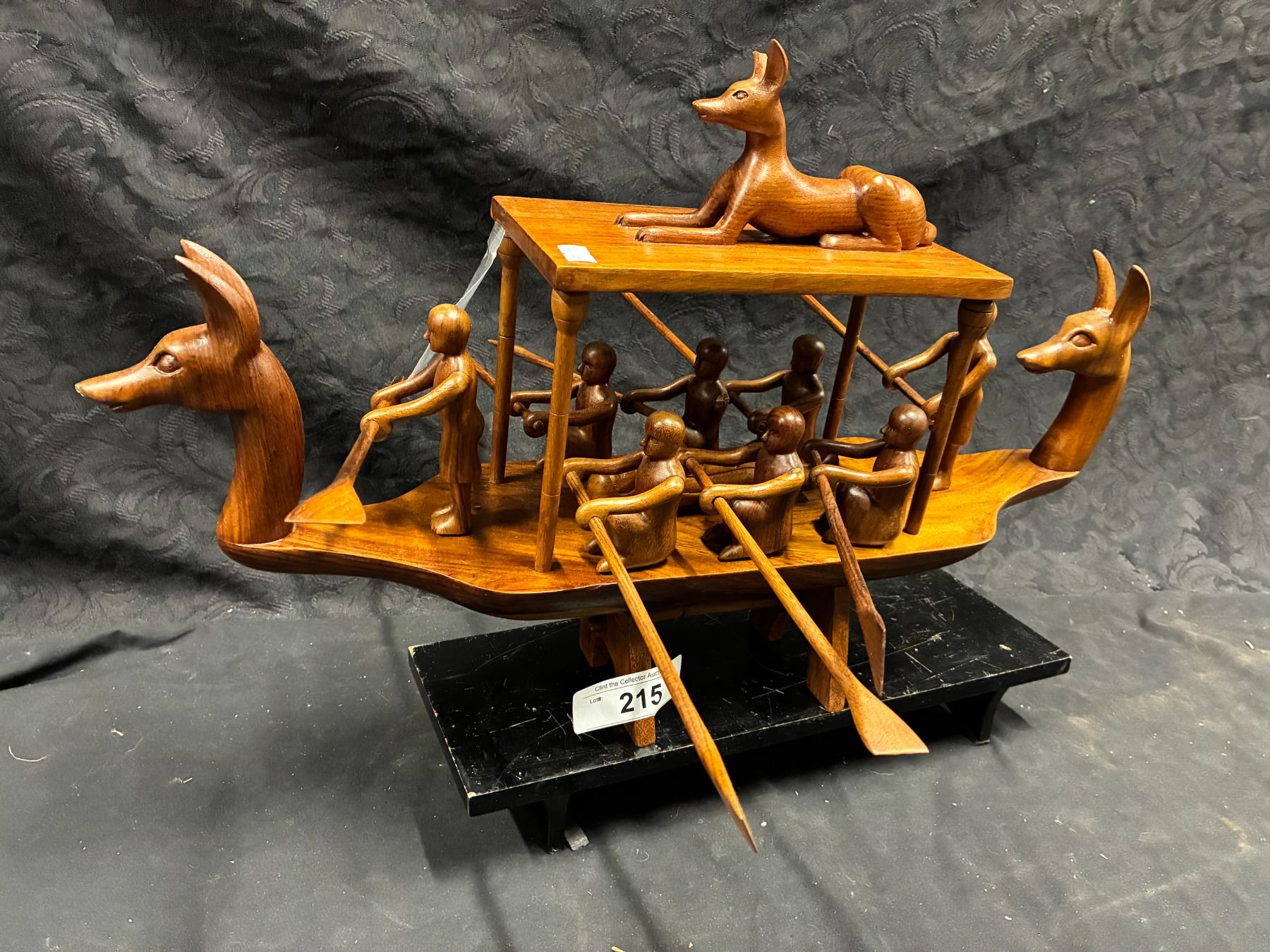 Lot 215 Vintage wooden Indonesian boat model, very cool! 19" long