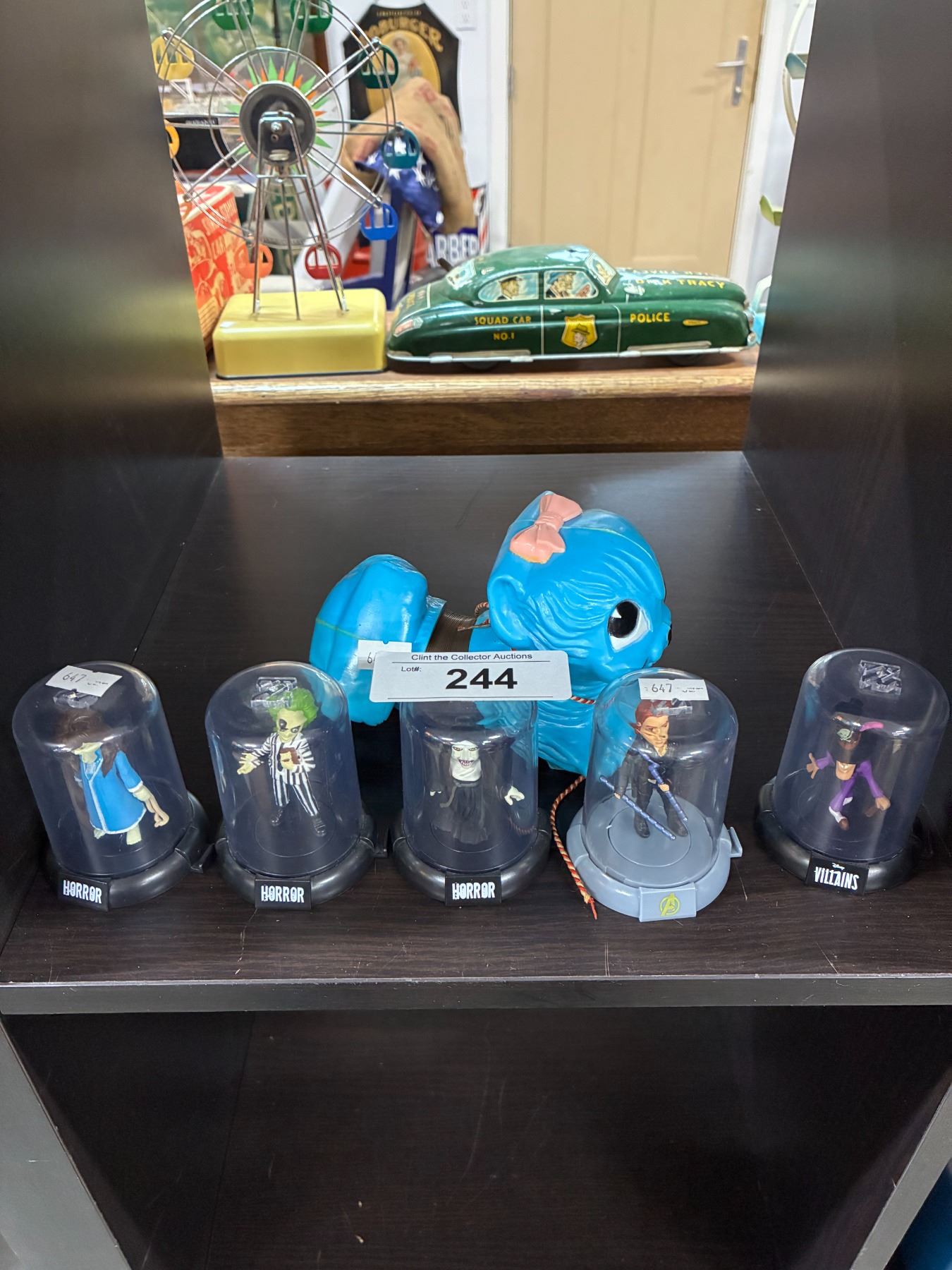 Lot 244 5 "horror" figurines in display cases and vintage slinky toy