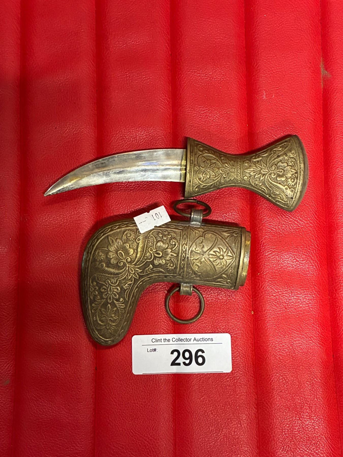 Lot 296 Antique metal dagger and sheath, 7.5"