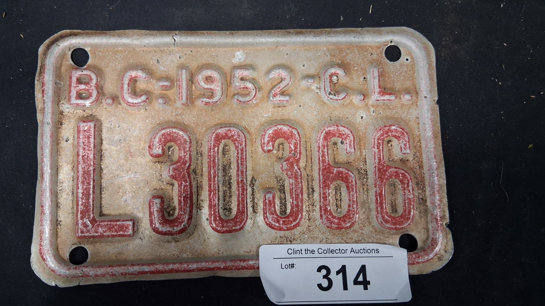 Lot 314 1952 BC trailer plate