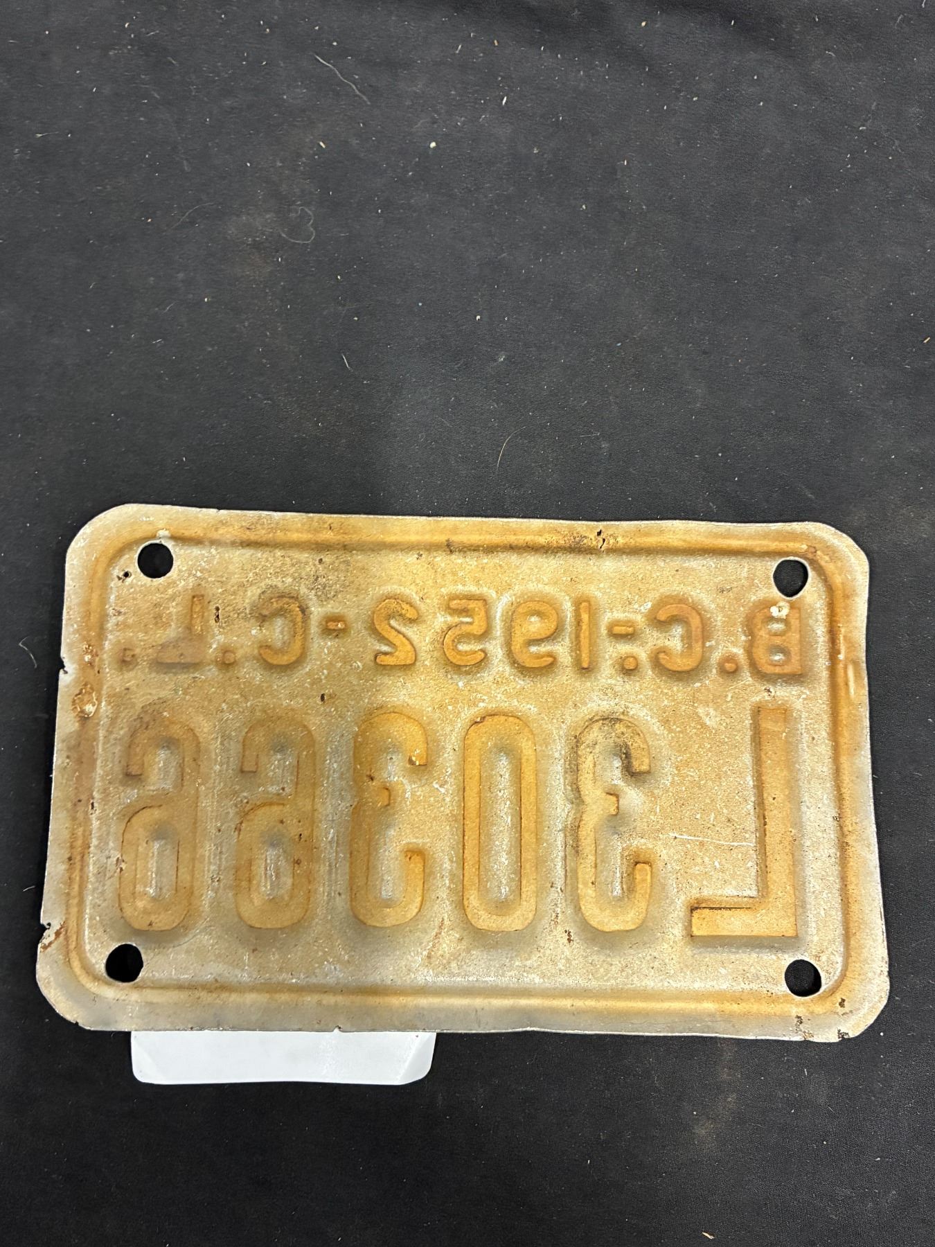 1952 BC trailer plate