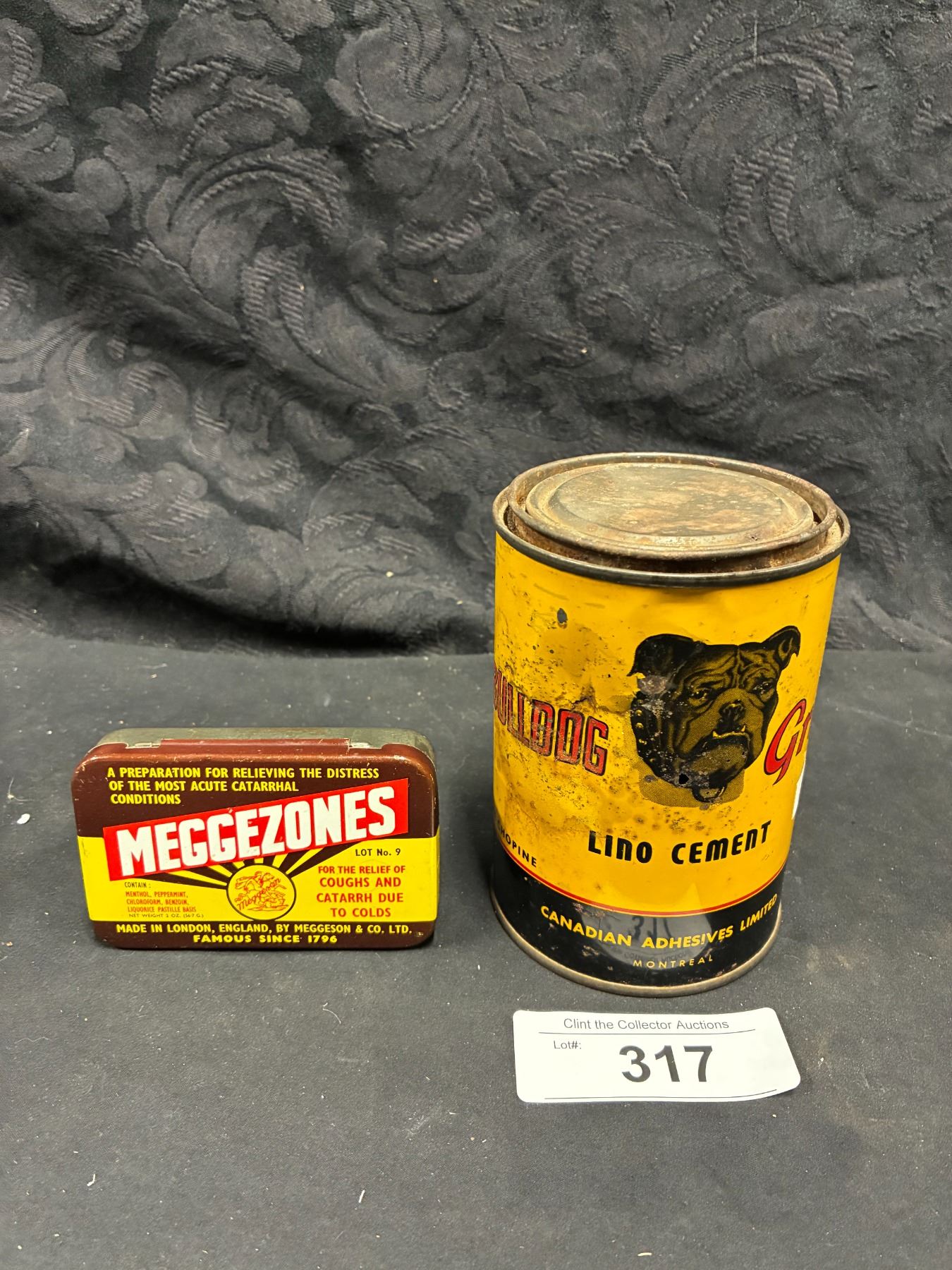 Lot 317 Rare Bulldog tin and Meggezones tin