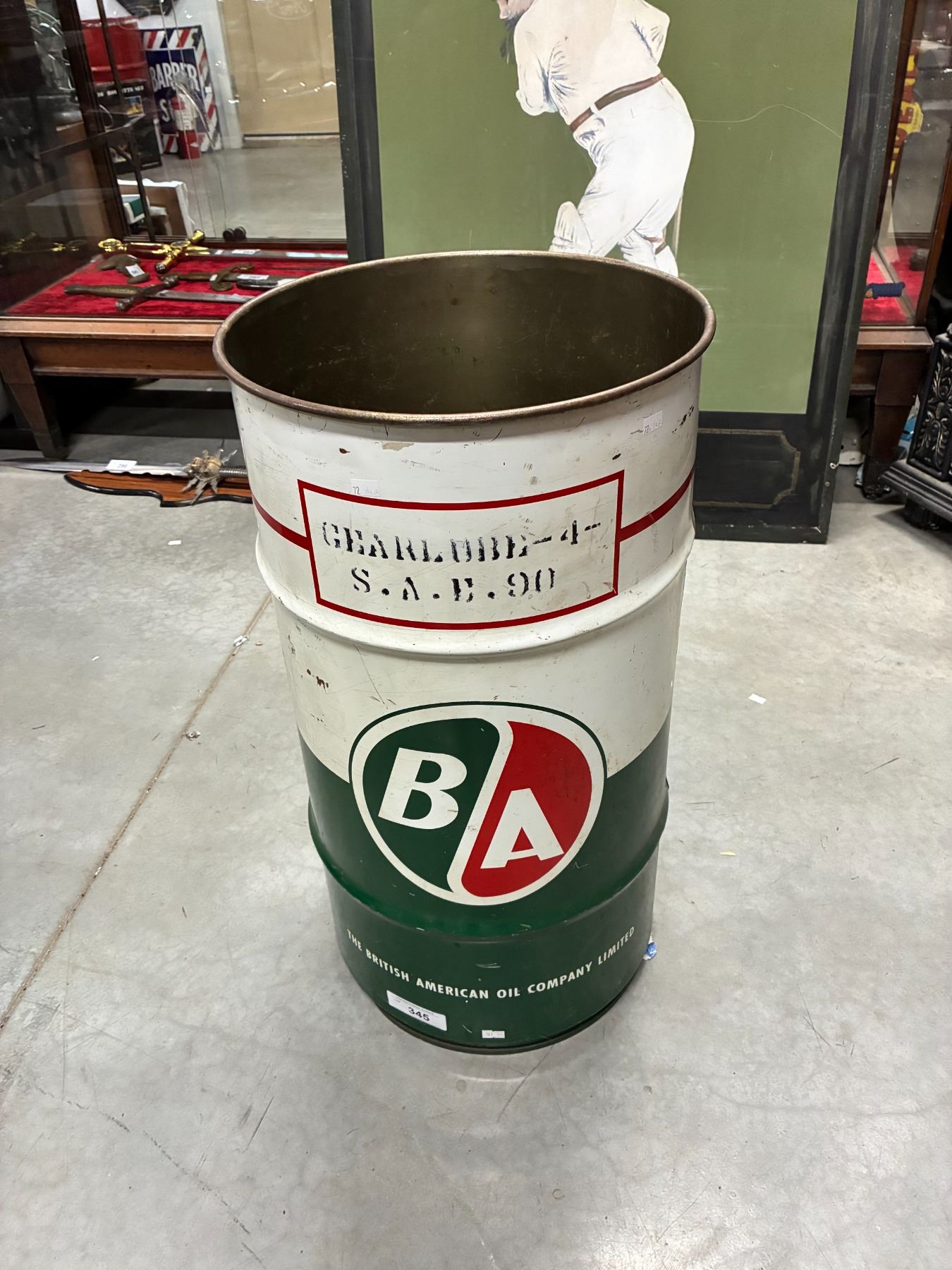 Lot 345 Vintage BA oil drum 27" tall