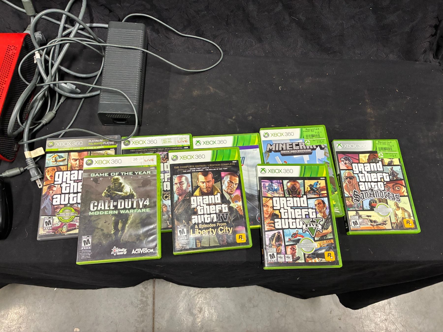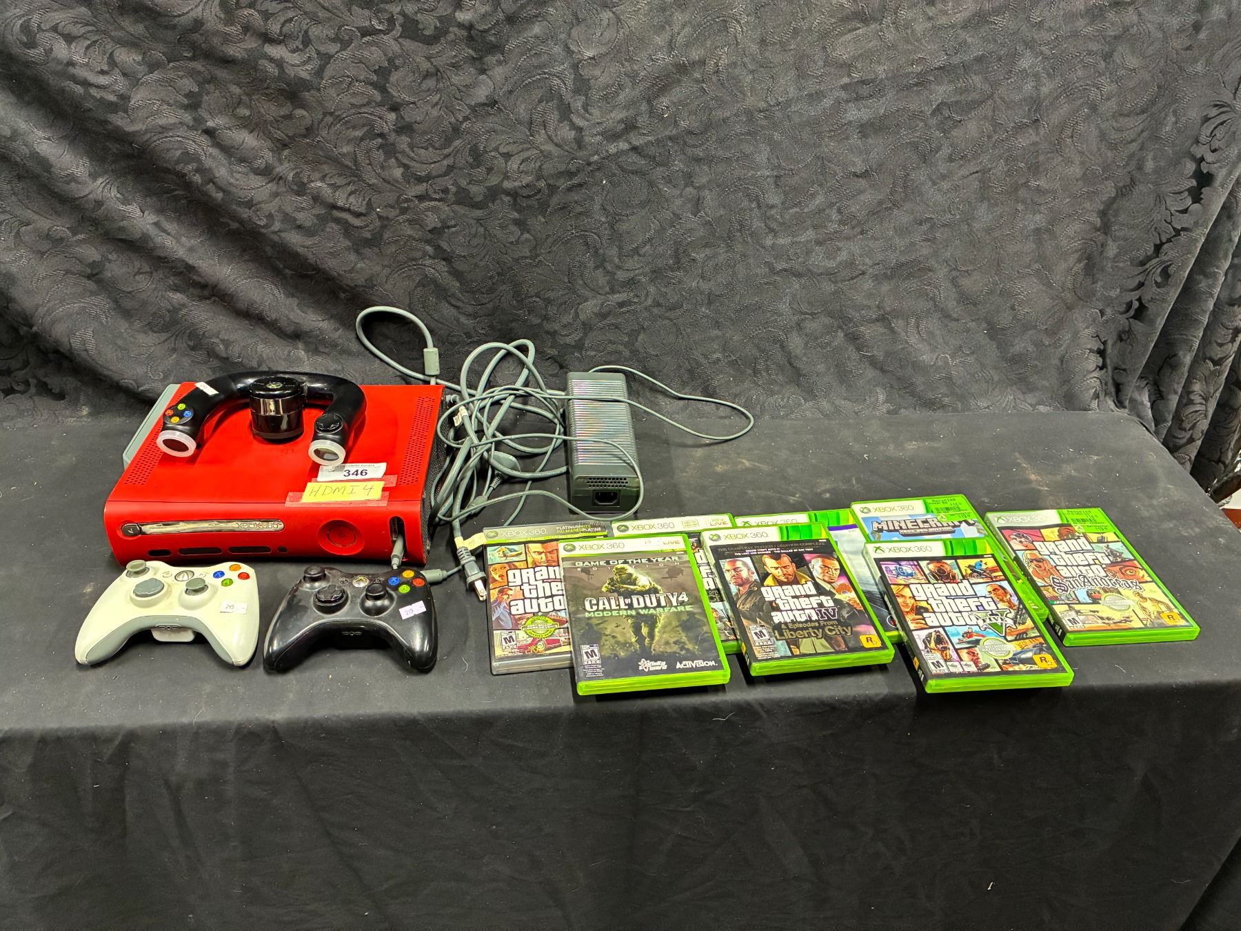 Lot 346 Xbox 360 with 8 games and controllers, Works!
