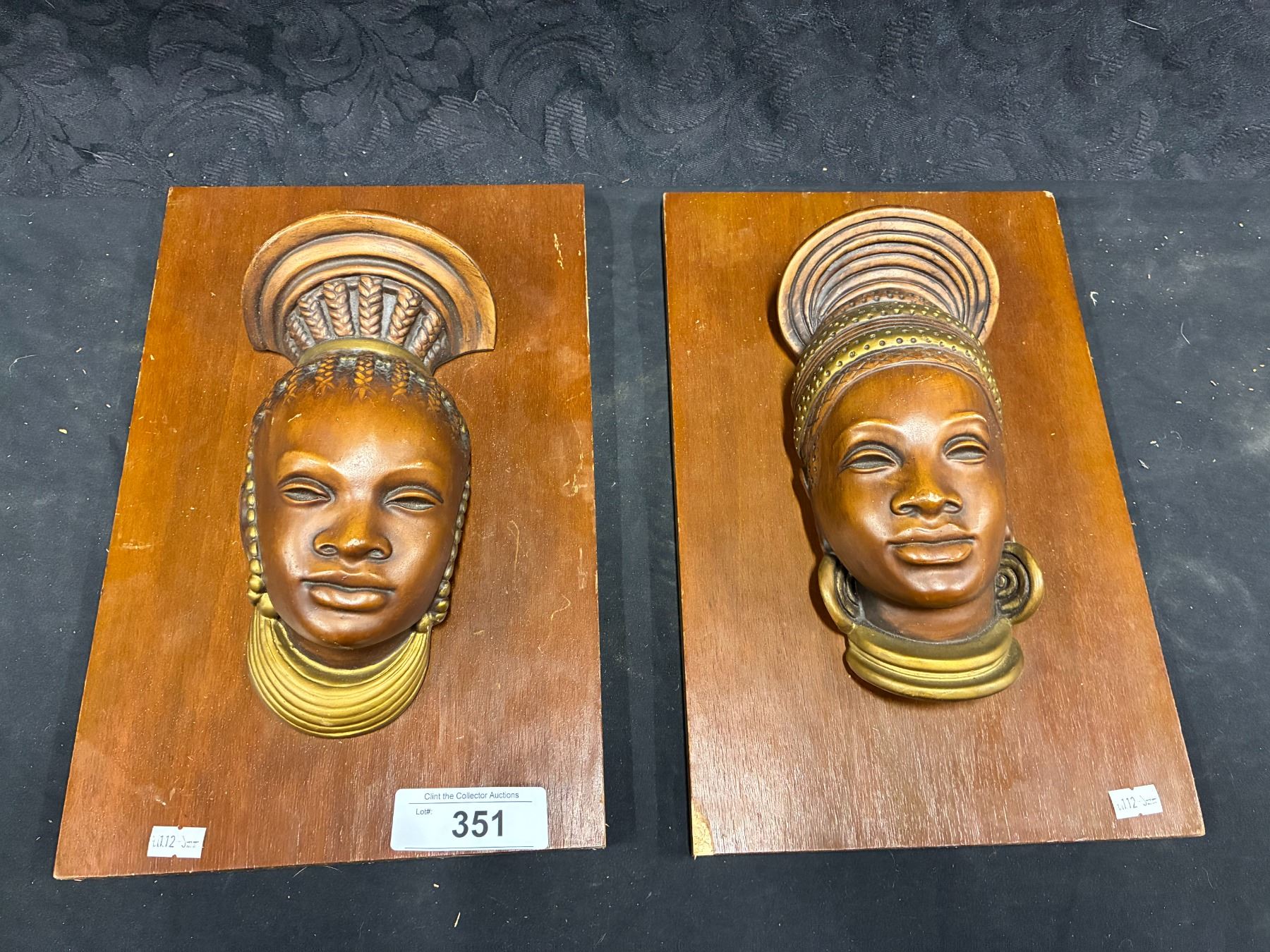 Lot 351 Pair of mid century wooden African pictures 14"x9"