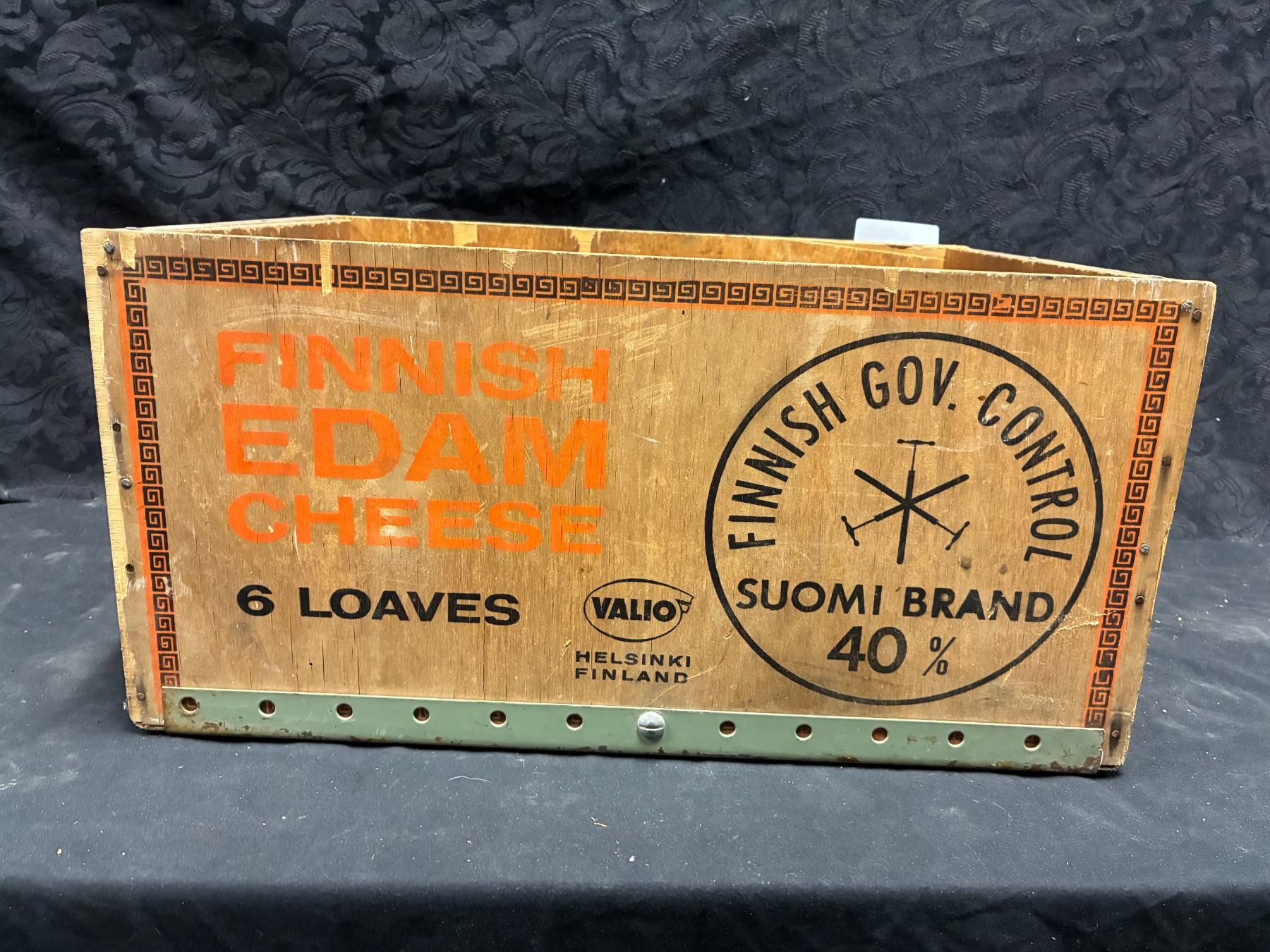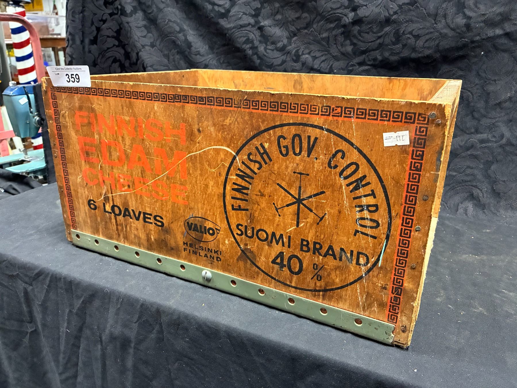 Lot 359 Finnish edam cheese crate from Finland 20"x10"