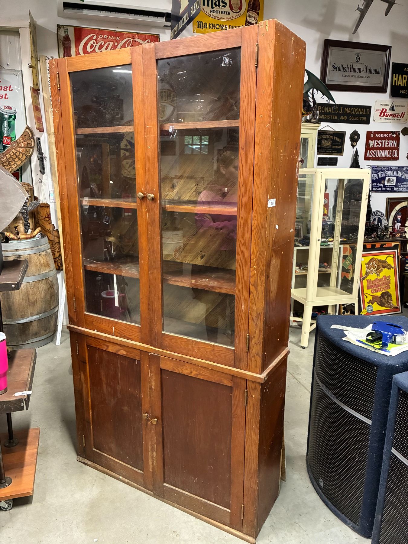 Lot 363 Large antique display cabinet, 77"x40"x12.5"