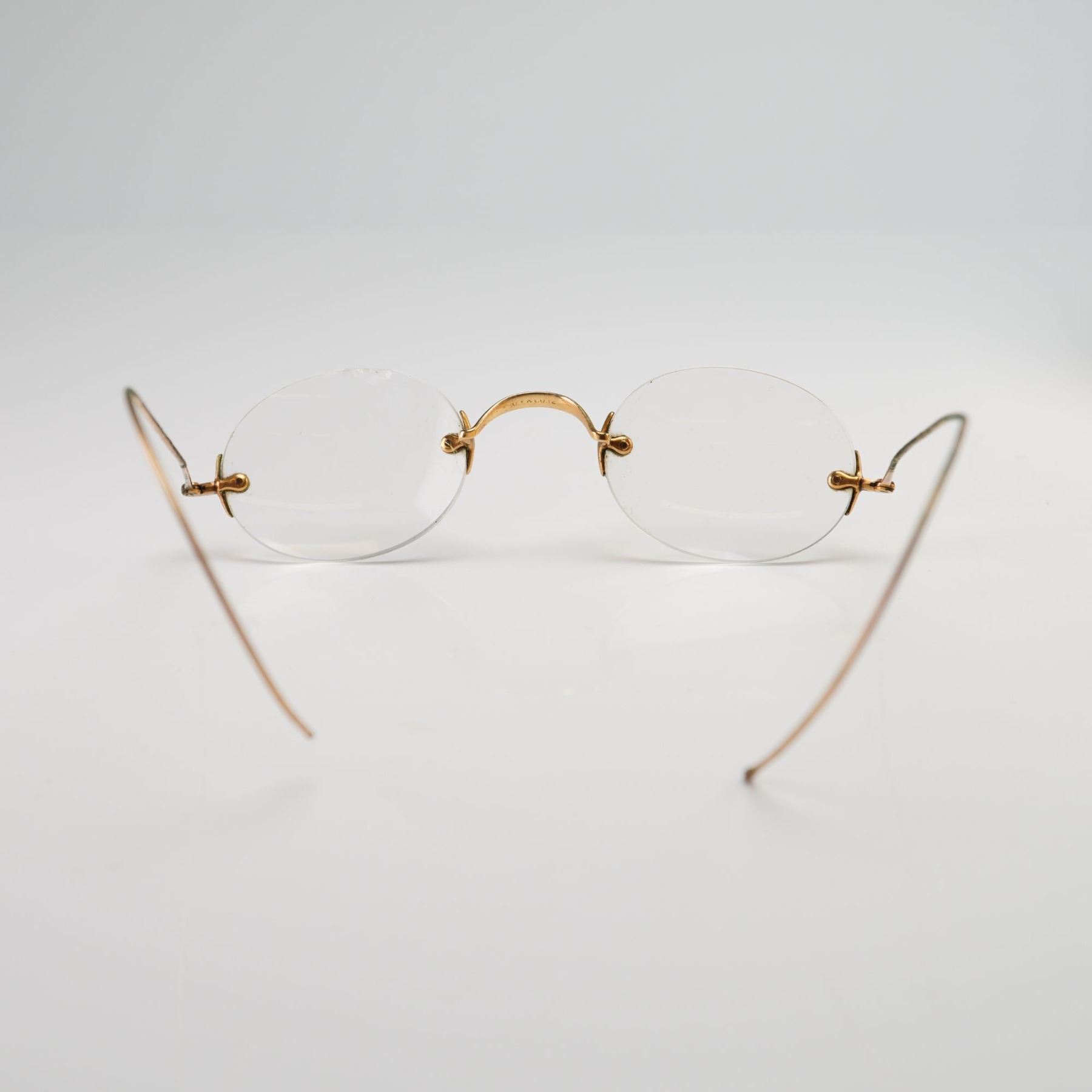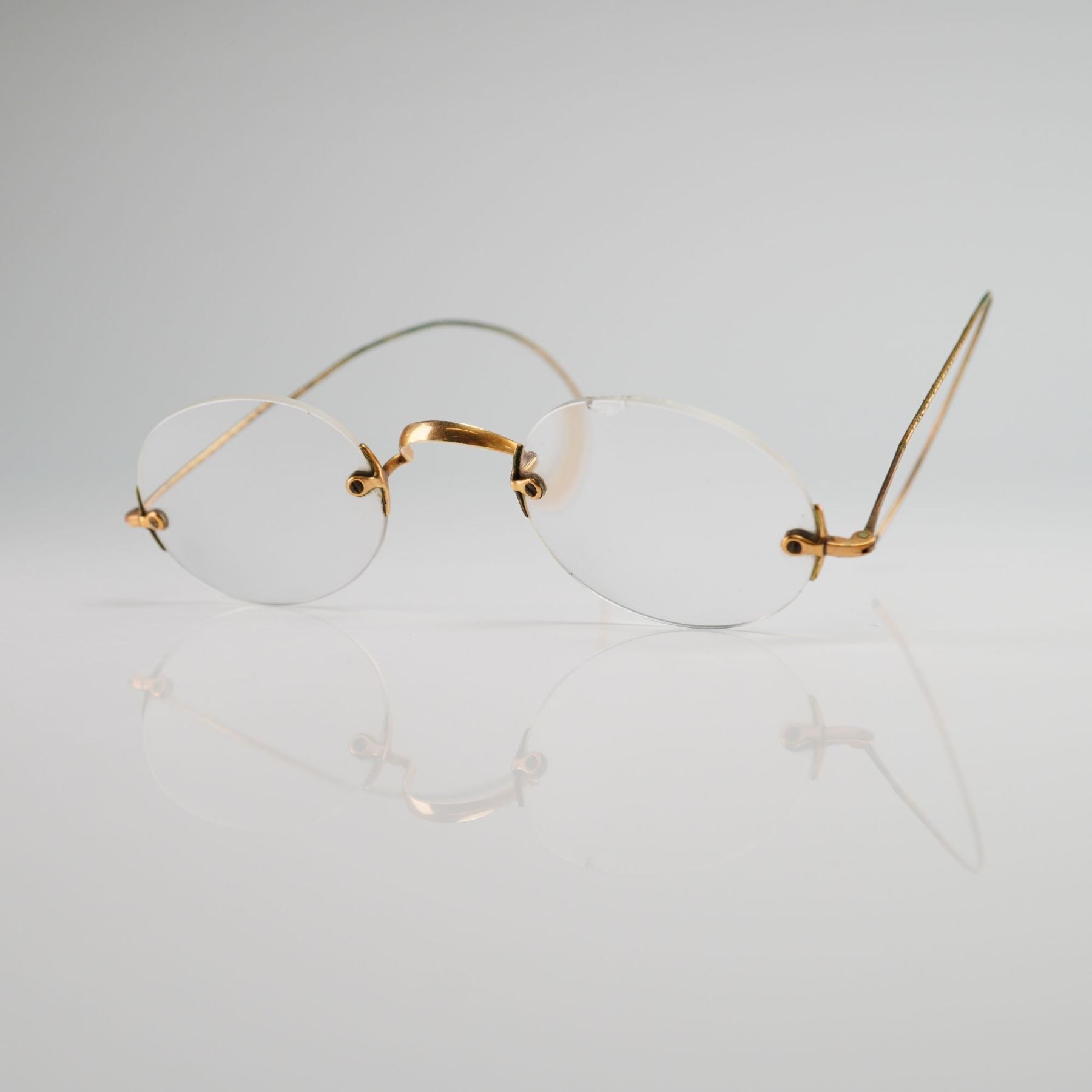 Lot 4 C.Y. & CO. 14 Karat Yellow Gold Rimless Bifocal Spectacles