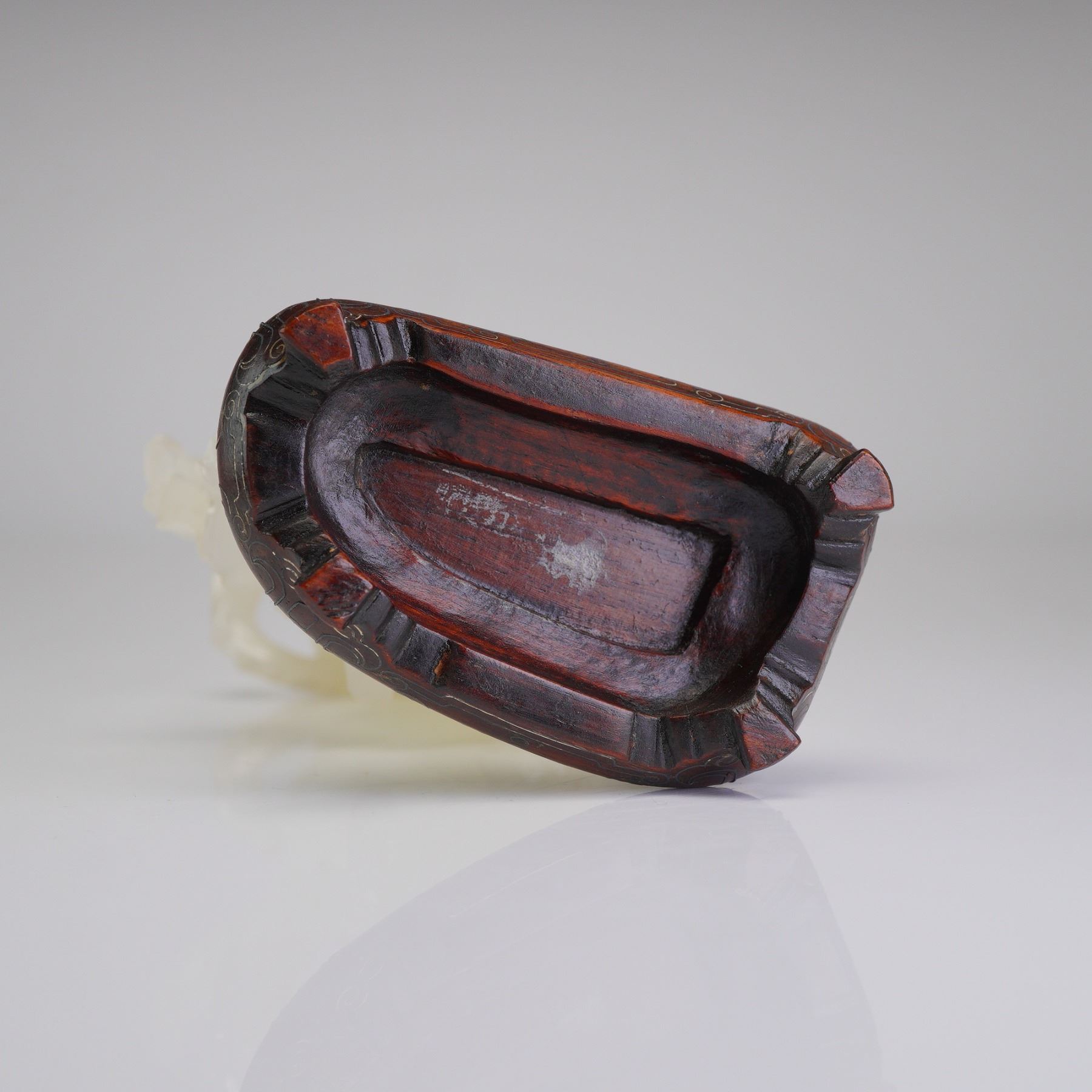 Lot 17 Chinese Carved White Jade Guanyin Figurine with Wooden Stand