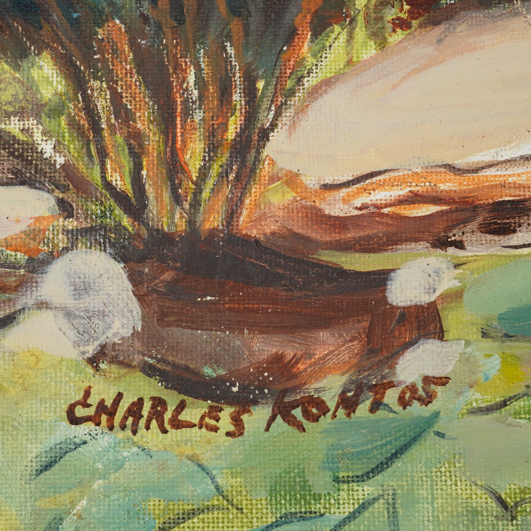 Lot 26 Charles Kontos, Framed Oil on Board, Western Mountain Landscape, Signed