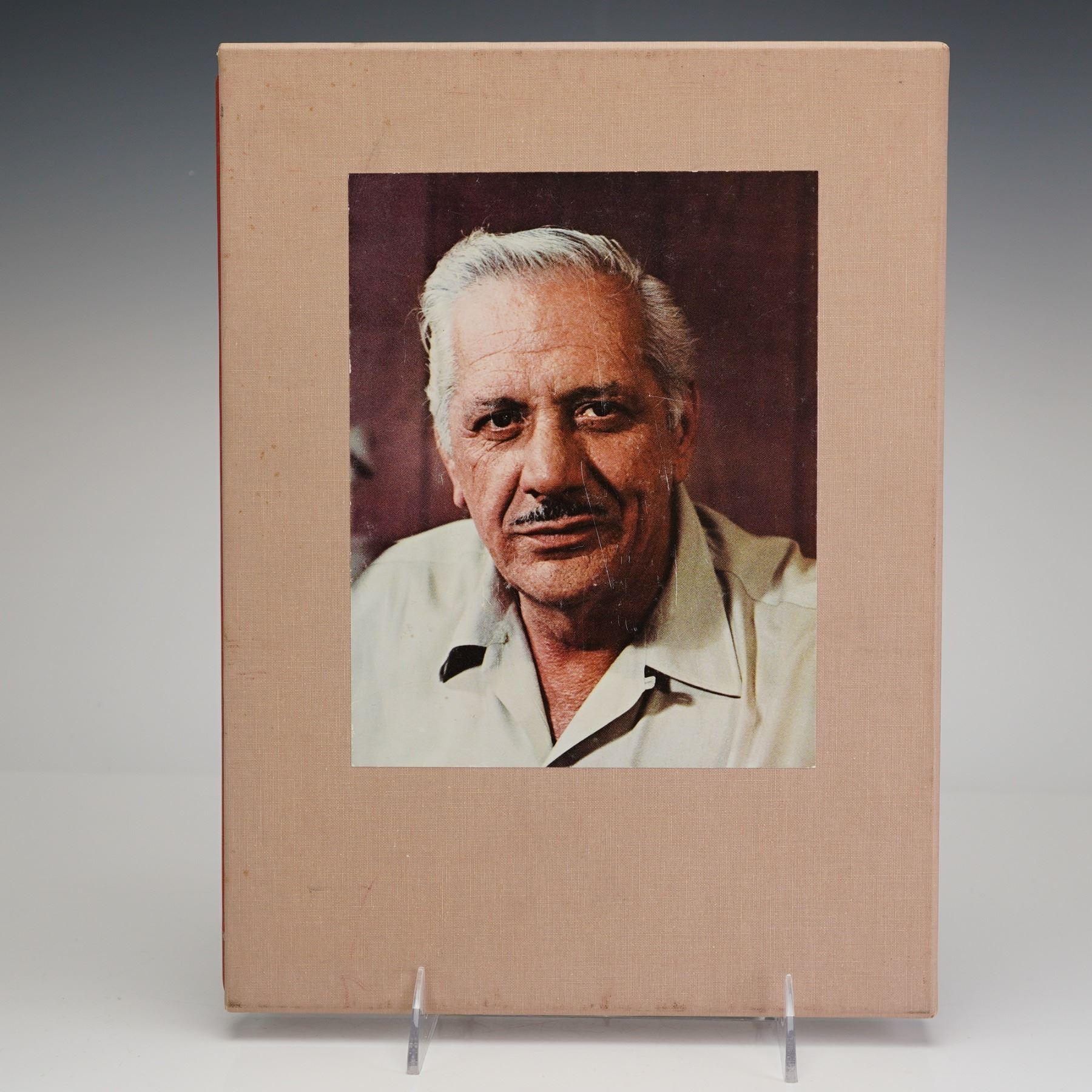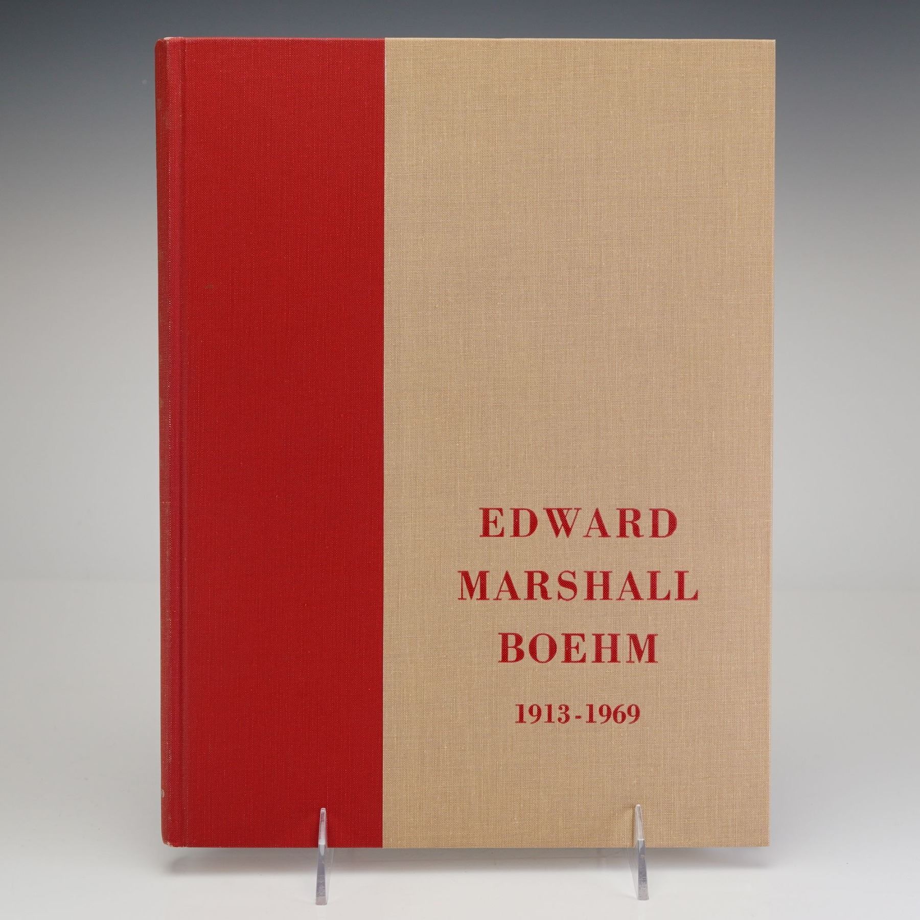 Frank J. Cosentino. Edward Marshall Boehm 1913-1969. [Trenton, NJ]: Edward Marshall Boehm, Inc., 1970. First Edition. Large quarto. Quarter-bound in red cloth over beige cloth boards with red stamped lettering to the front cover. Housed in the publisher's original beige cloth slipcase featuring a large color photographic portrait of Edward Marshall Boehm mounted on the front panel. This biographical monograph and catalogue raisonne contains numerous high-quality color plates of Boehm's porcelain work, including Plate 5 depicting bird figurines, with photography by Charles P. Mills, Jr. and original sketches by Edward Marshall Boehm. Printed by The Lakeside Press, R. R. Donnelley & Sons Company. Signature and inscription details: Inscribed by Helen Boehm, the artist's widow, in blue ink on the copyright page: To Henry & Norma Obermaier with deep appreciation for your devoted interest in my beloved husband's work. Fondly, Helen Boehm Sept 10 - 1970.
