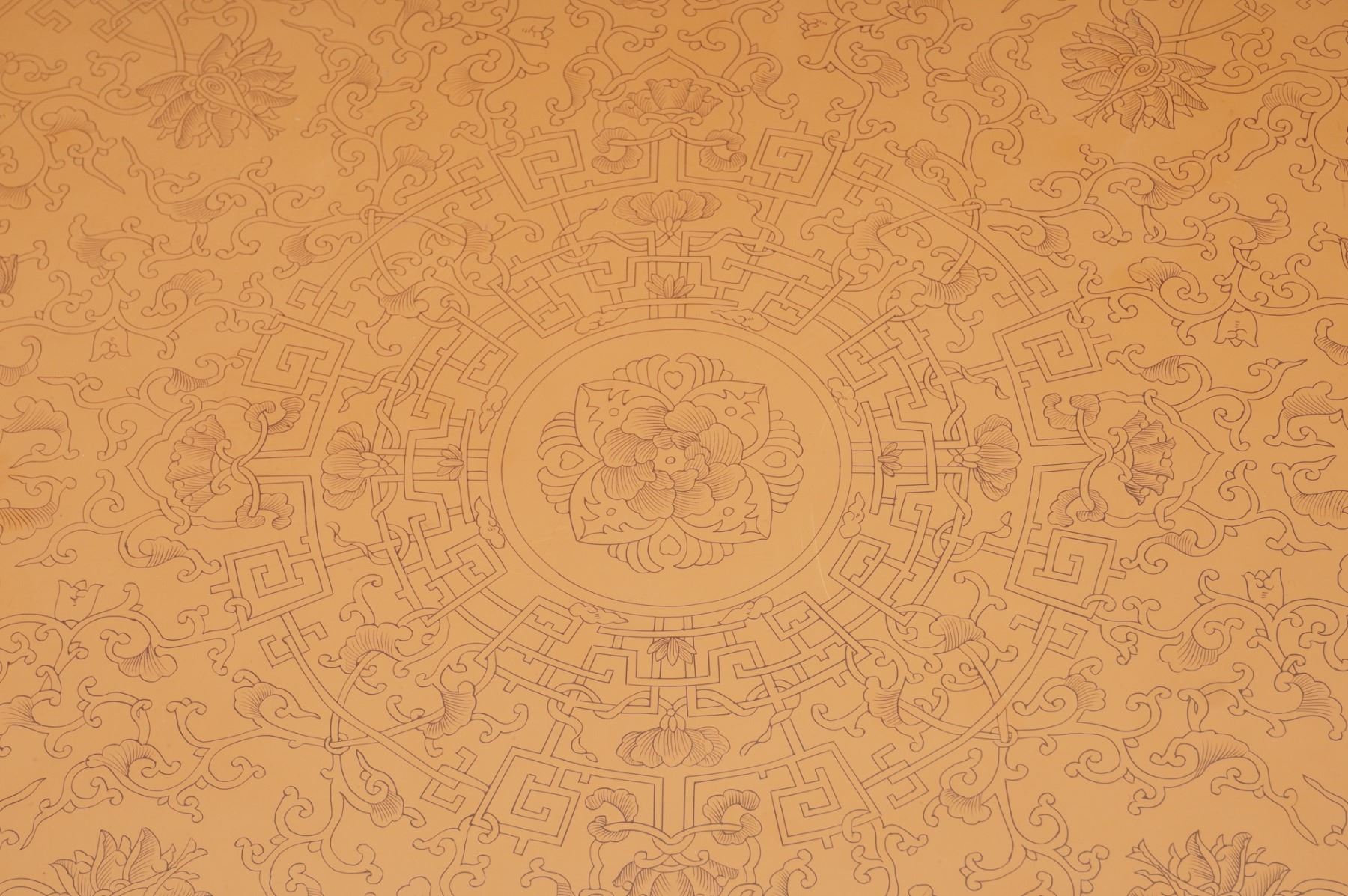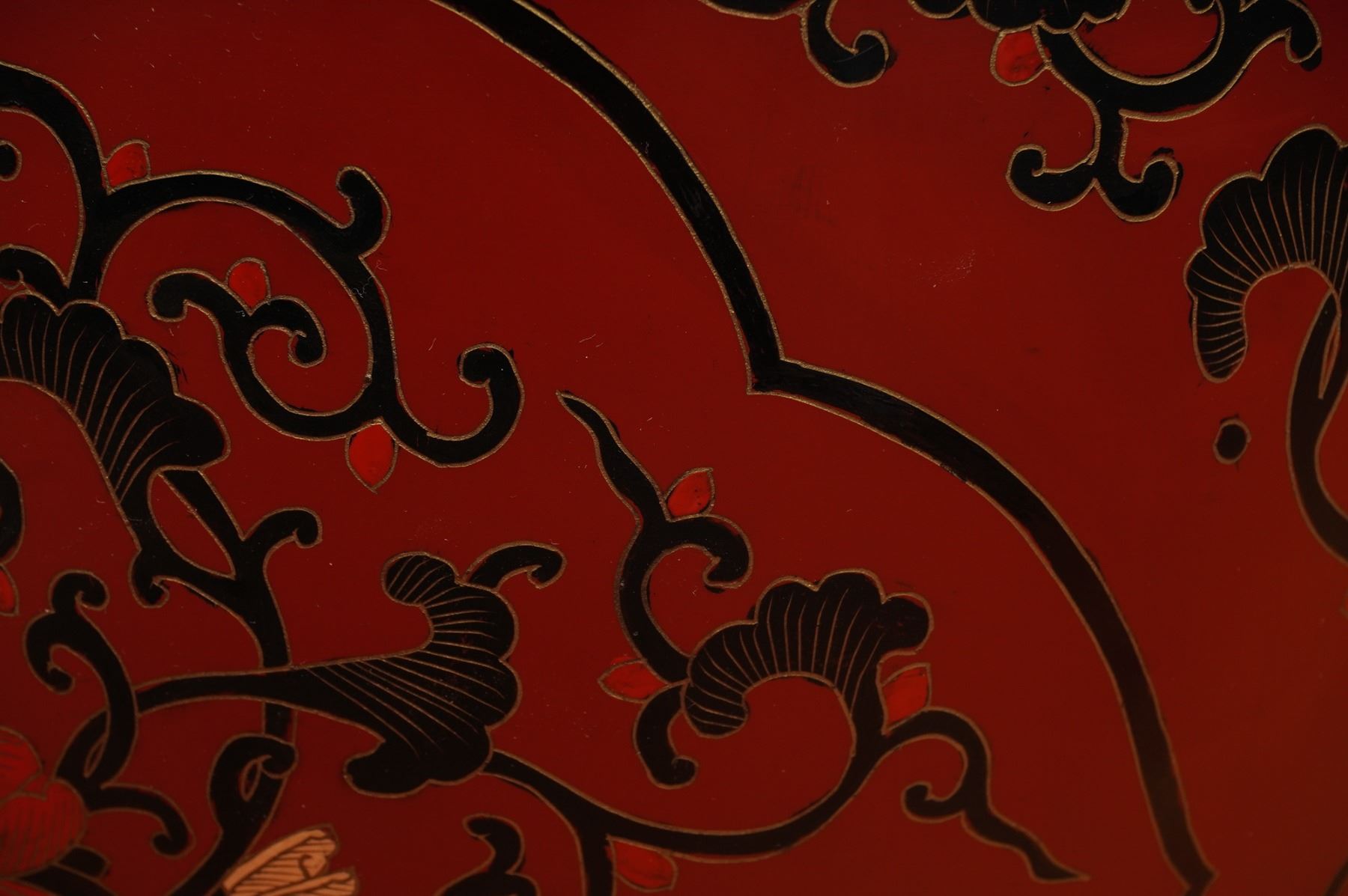 Lot 54 5pc Oriental Red Coromandel Drum Coffee Table with Stools