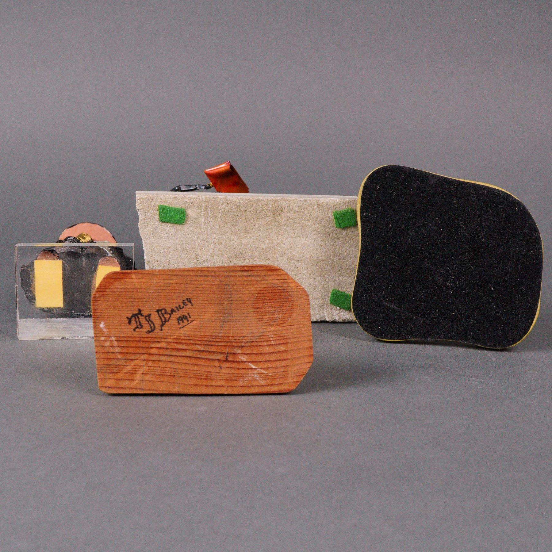 Lot 100 4 Folk Art Figurines & Metal Newspaper Stand on Stone Base