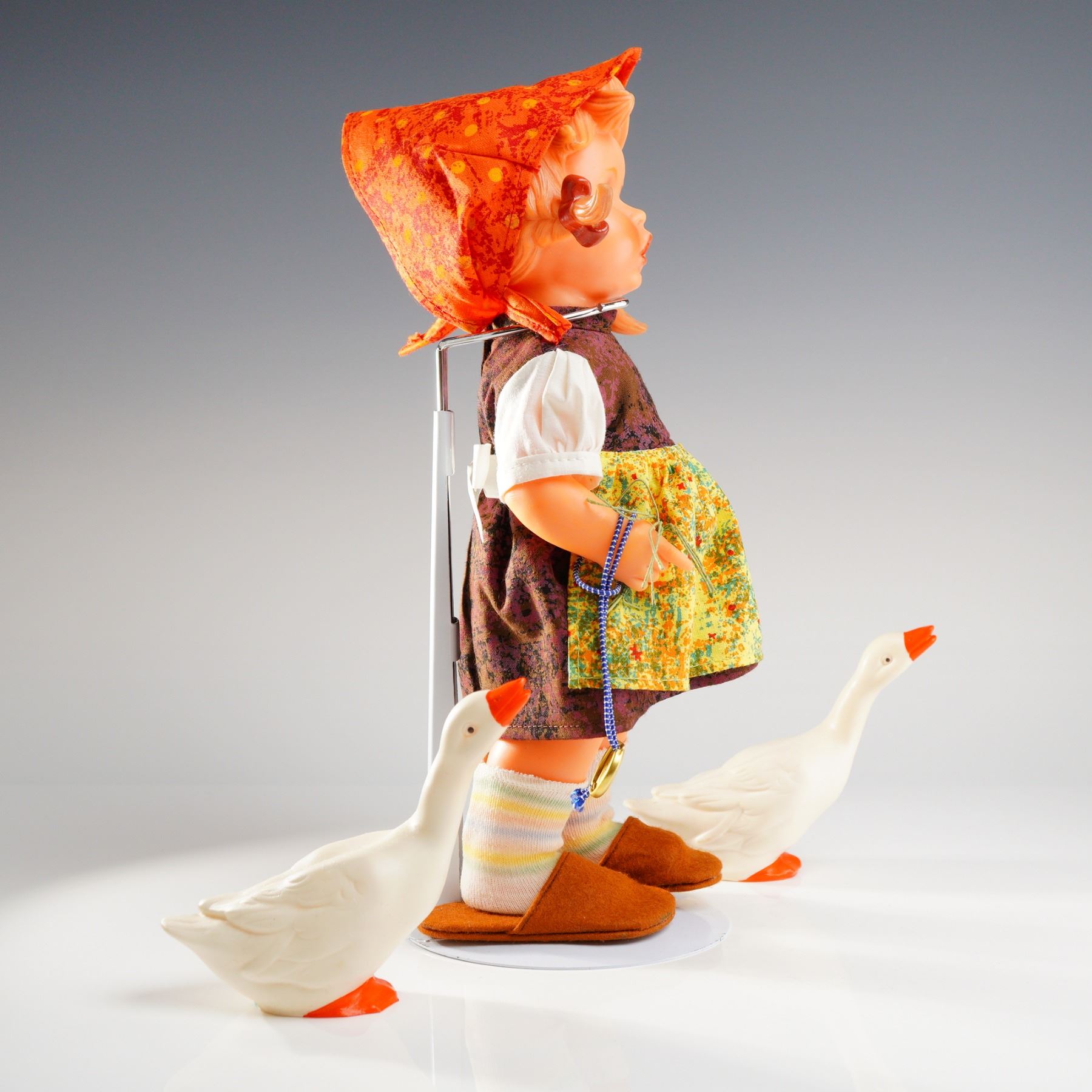 Lot 113 Goebel Hummel Goose Girl Vinyl Doll Set with Two Geese and Packaging