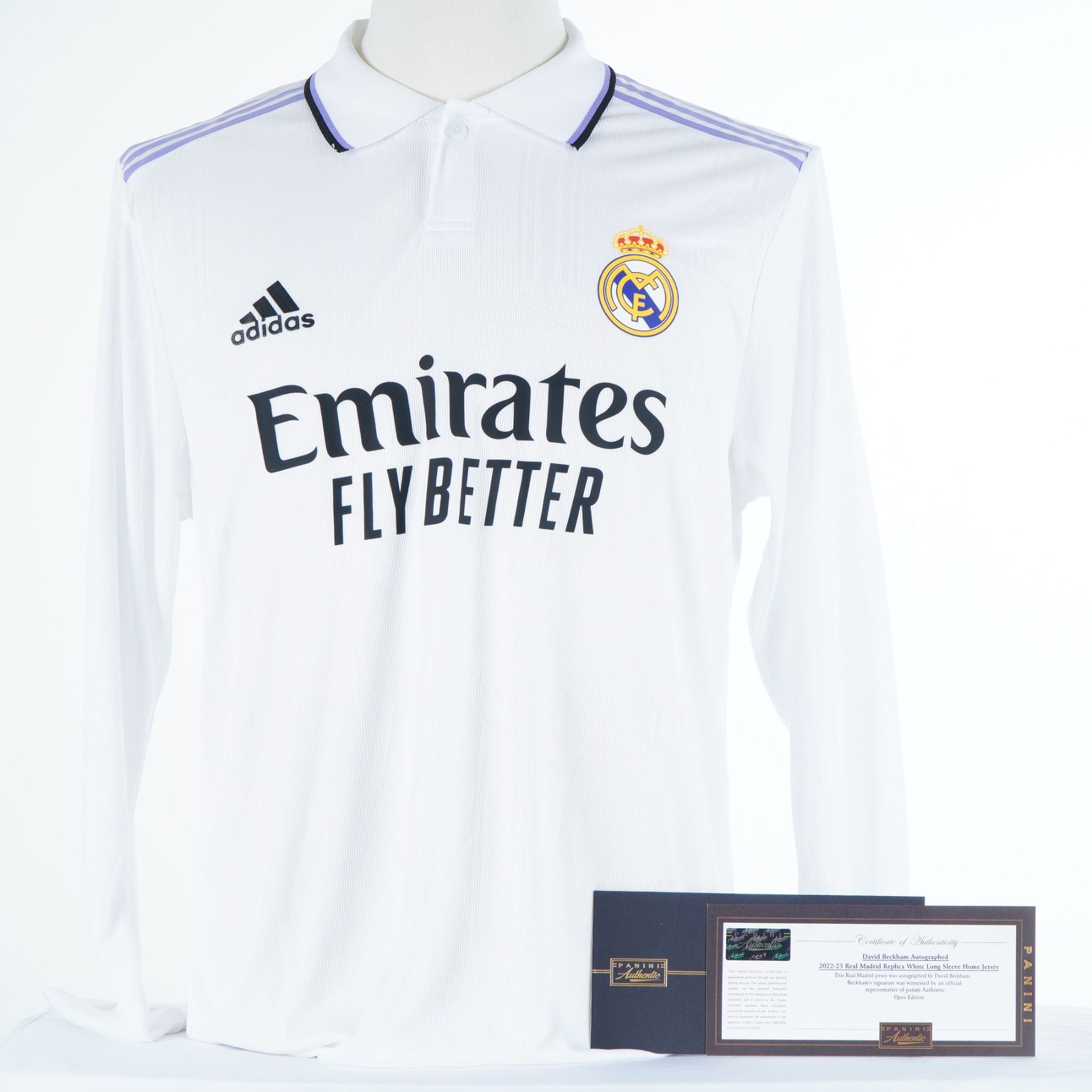 Lot 117 David Beckham Signed Real Madrid 2022-23 Long-Sleeve Home Jersey - Panini Authentic