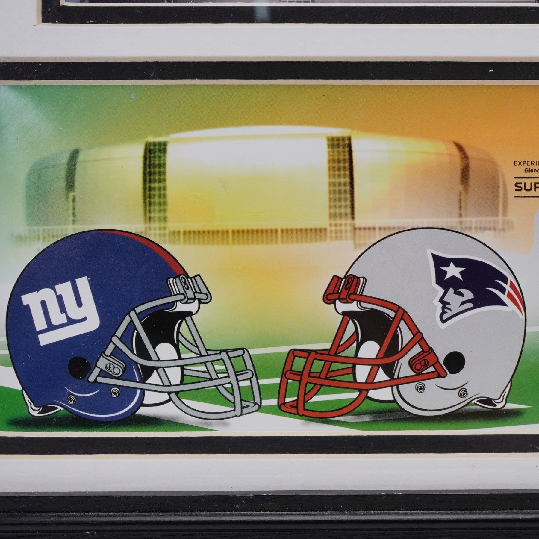 Lot 131 Framed 2008 New York Giants Vs. New England Patriots Super Bowl Memorabilia
