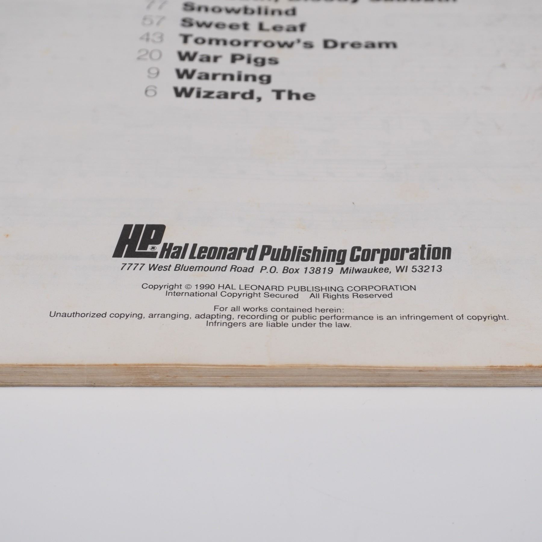 Awesome vintage bass guitar transcriptions book for Black Sabbaths We Sold Our Soul for Rock N Roll tour, published by Hal Leonard Publishing Corporation in 1990. This book features authentic transcriptions by Joff Jones with both notes and tablature, covering classic tracks like War Pigs, Paranoid, Iron Man, Sweet Leaf, and more. Marked Hal Leonard Publishing Corporation