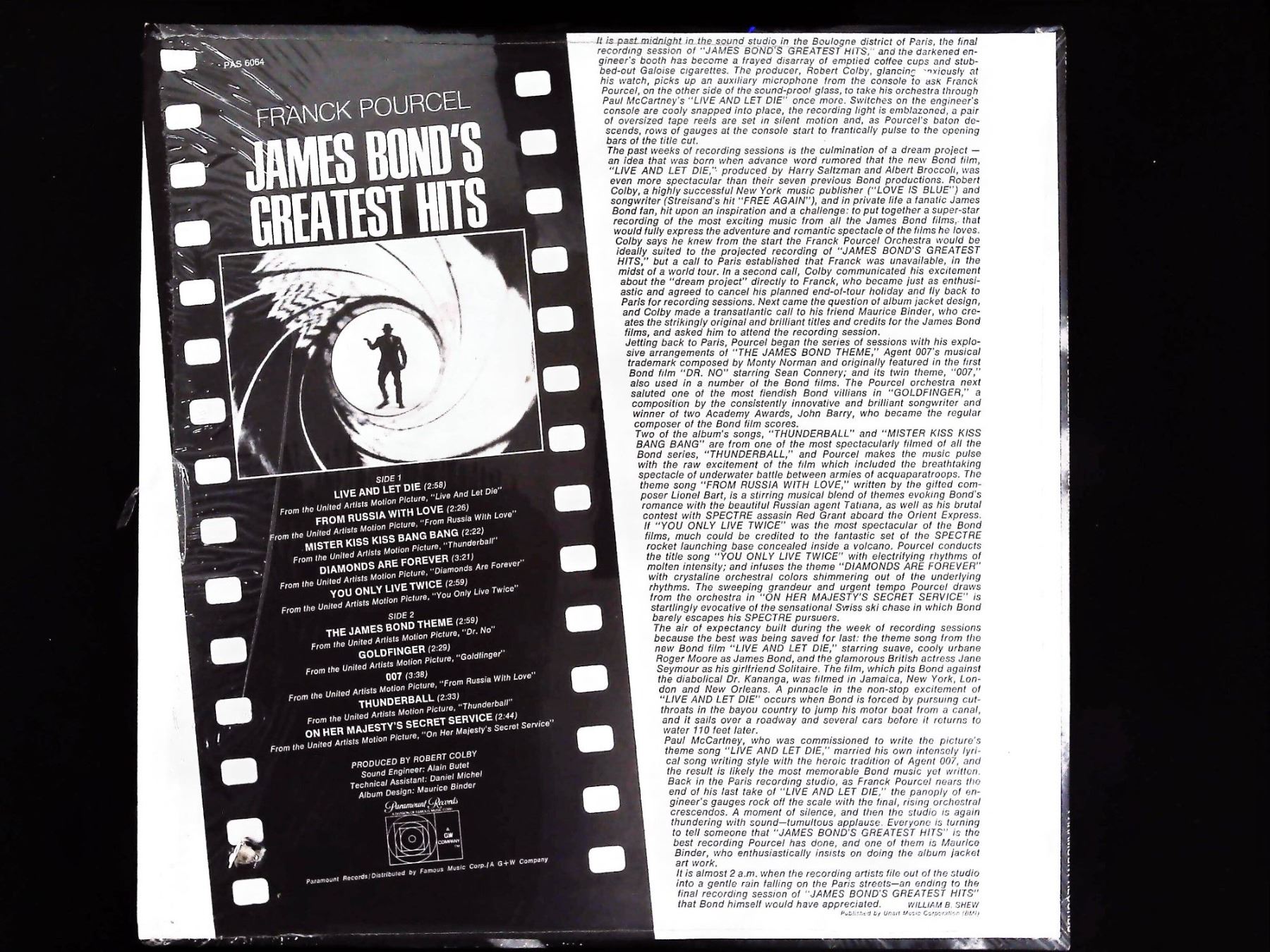 Lot 155 Franck Pourcel James Bond's Greatest Hits Vinyl LP Album Sleeve