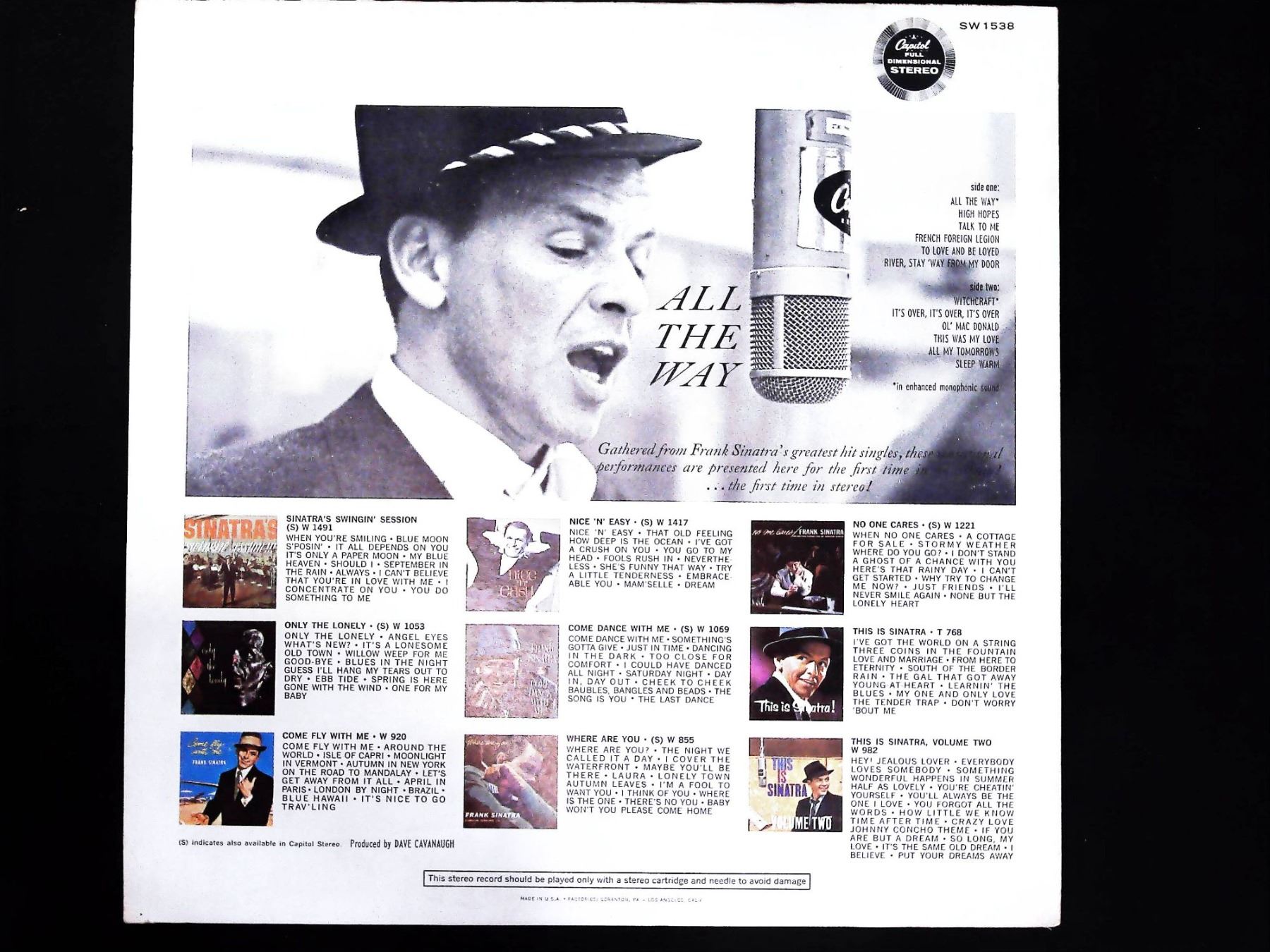 Lot 156 Frank Sinatra All The Way Capitol Records Stereo LP SW 1538