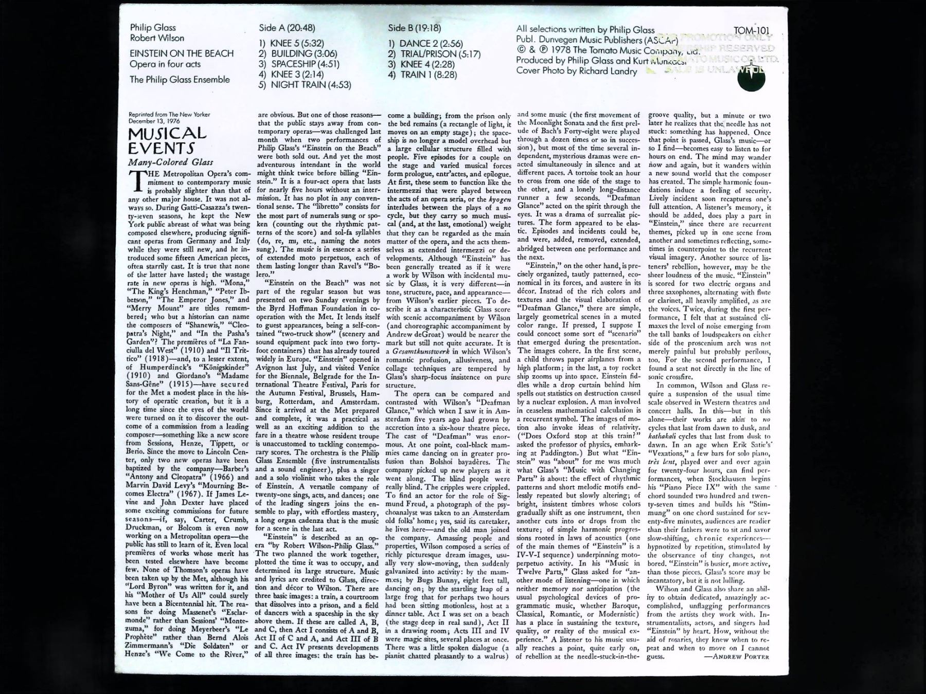 Lot 165 Philip Glass Einstein on the Beach Promotional Vinyl LP