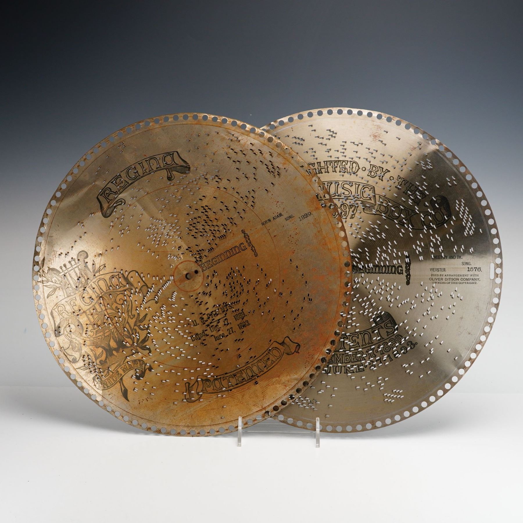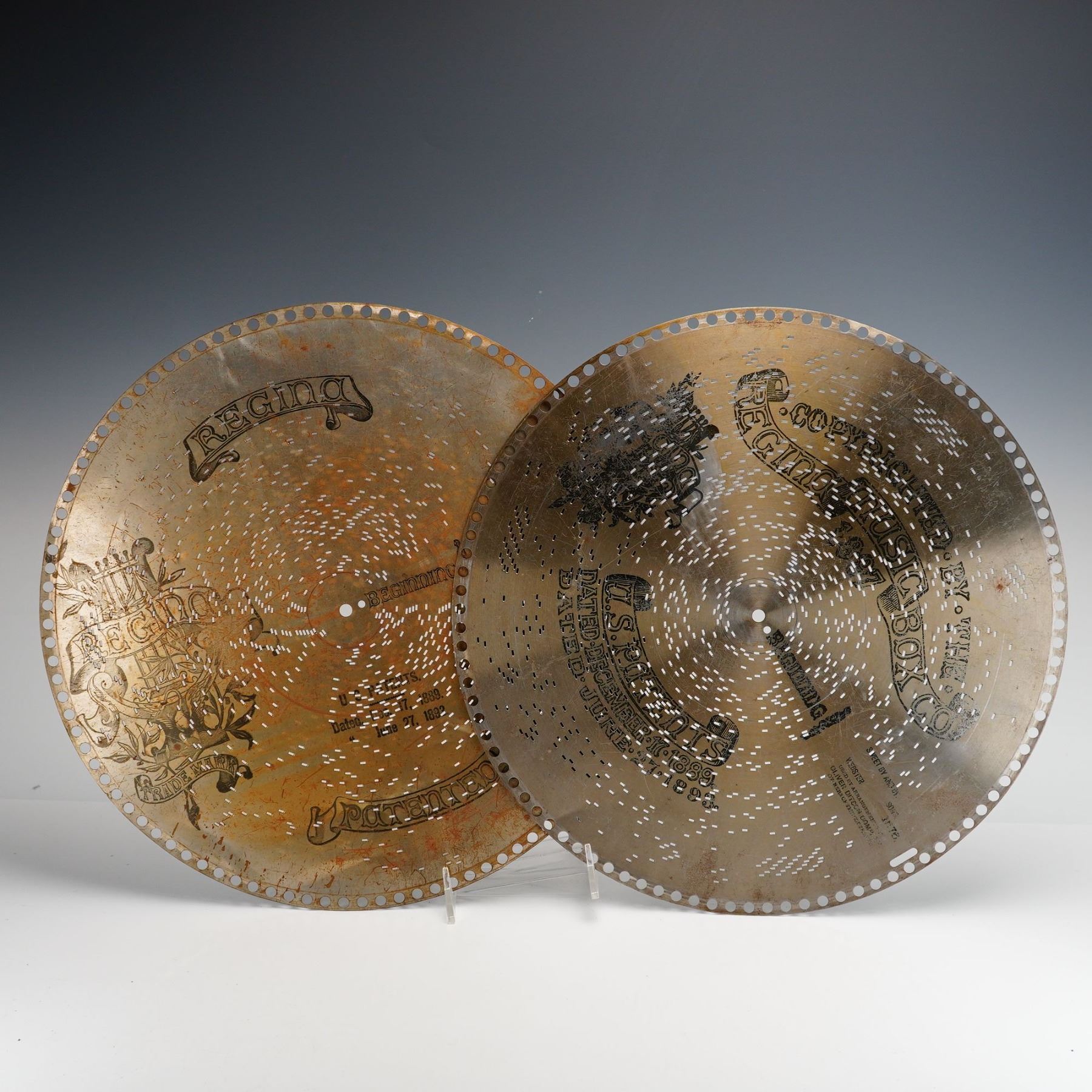 Lot 169 Regina Music Box Co. 15.5-Inch Perforated Metal Music Box Discs, A Pair