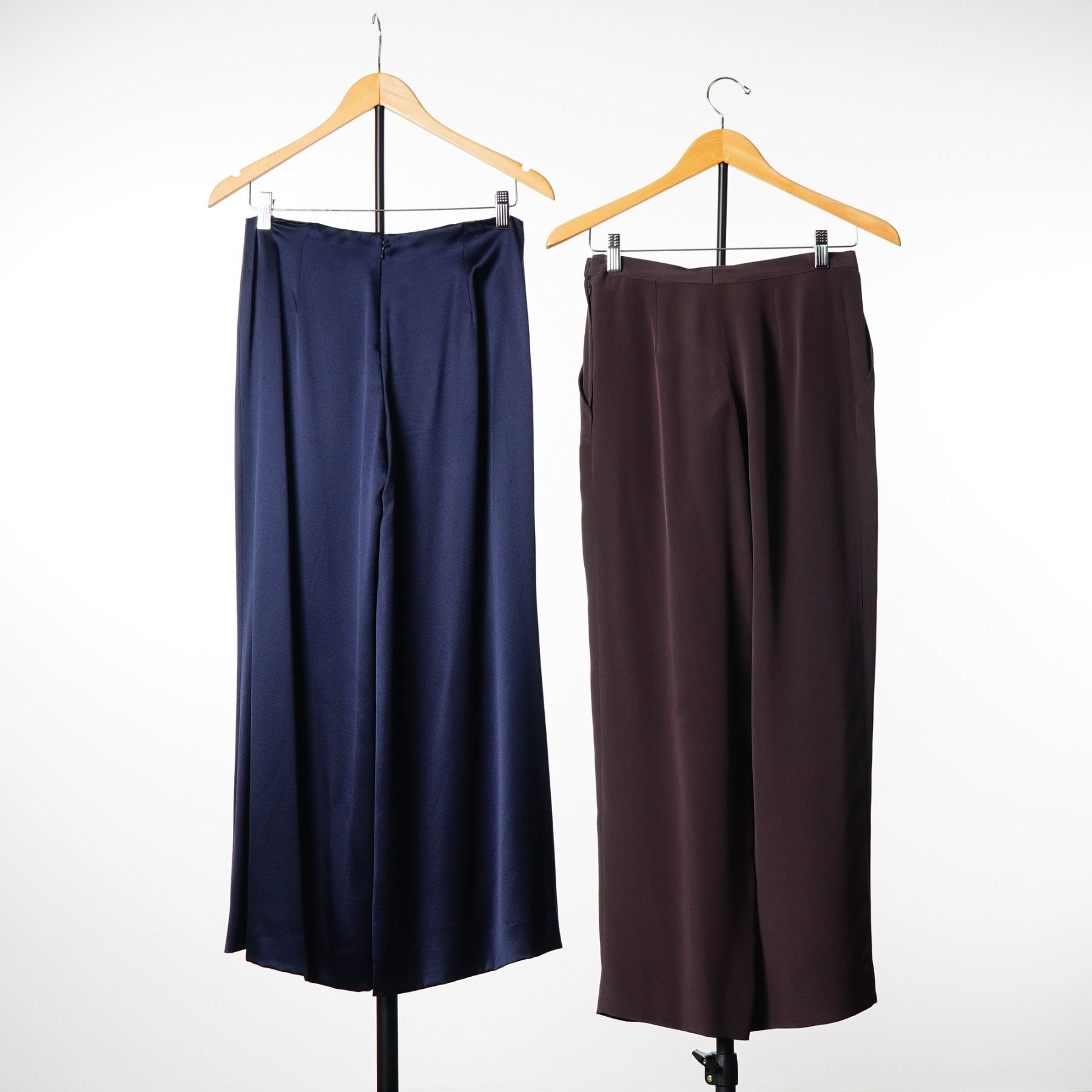 Lot 237 2pc Designer Wide-Leg Silk Trousers, Ralph Lauren and OGGI Miami Beach