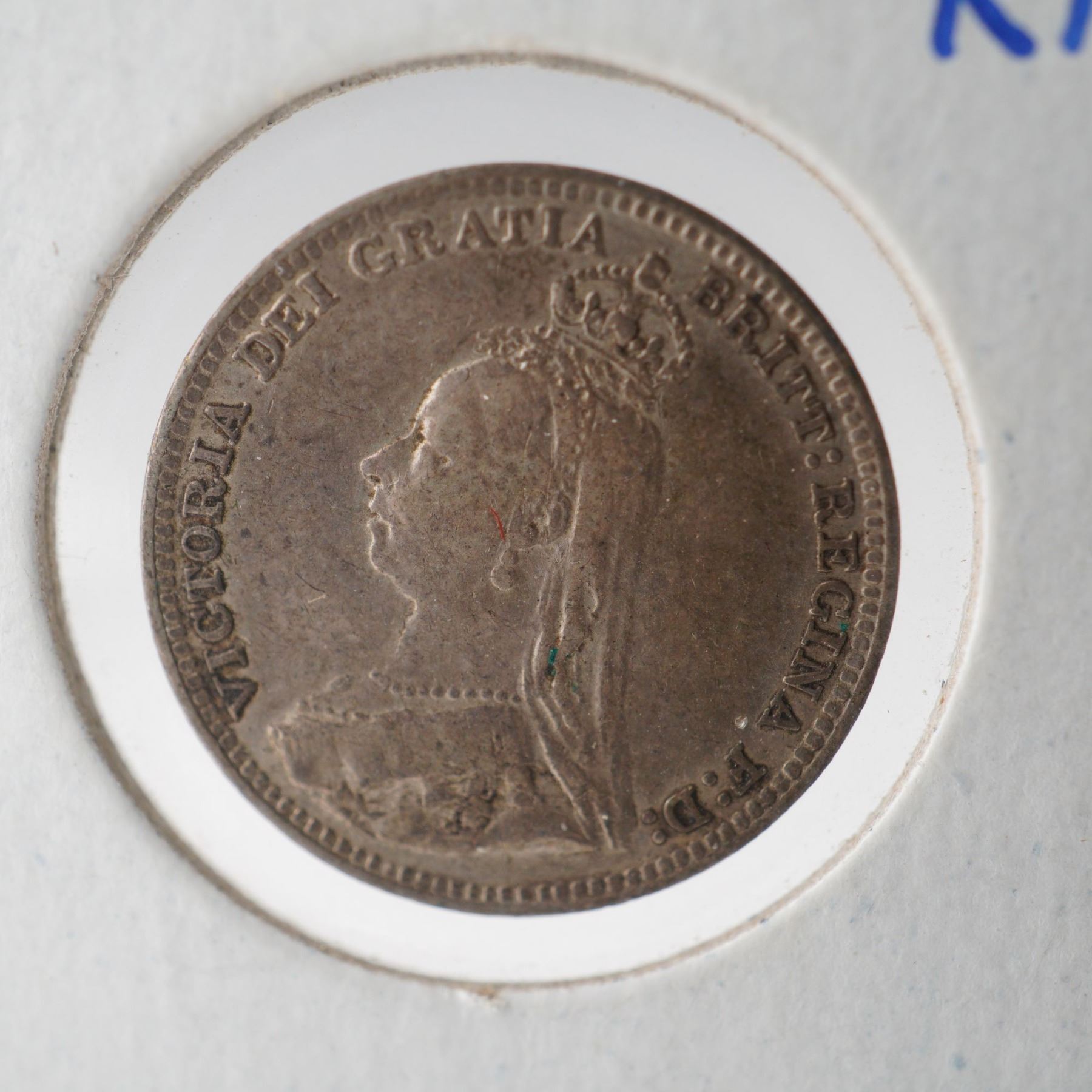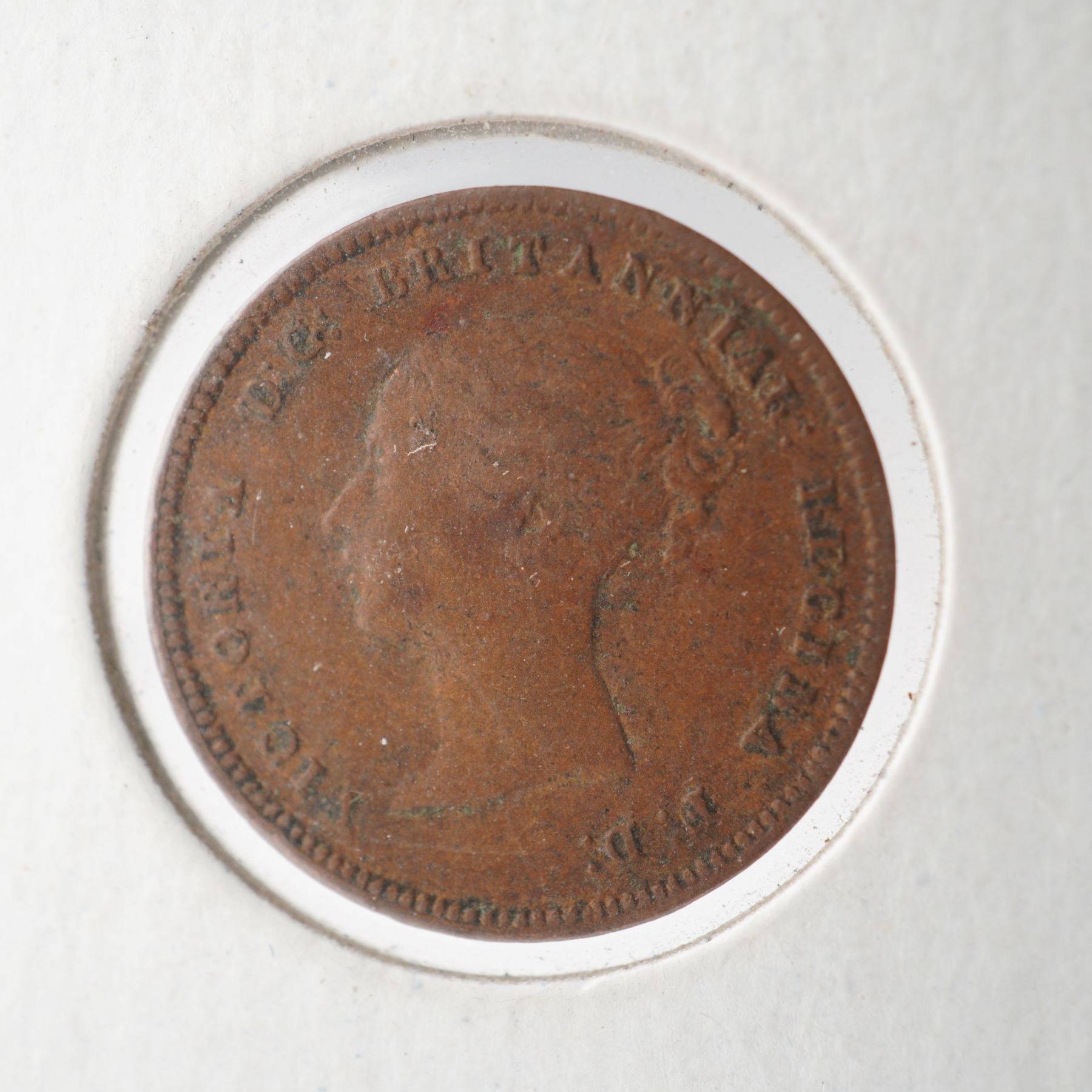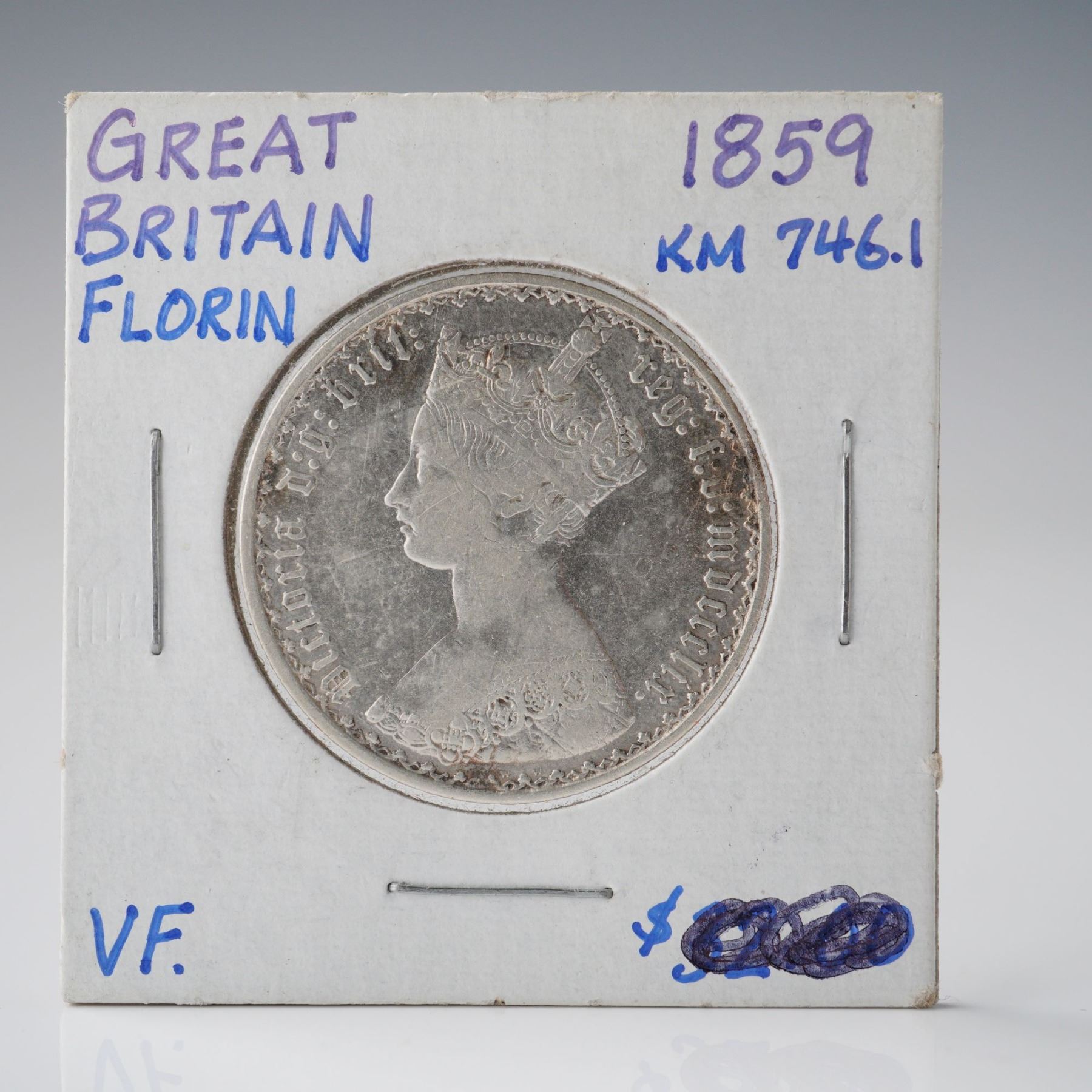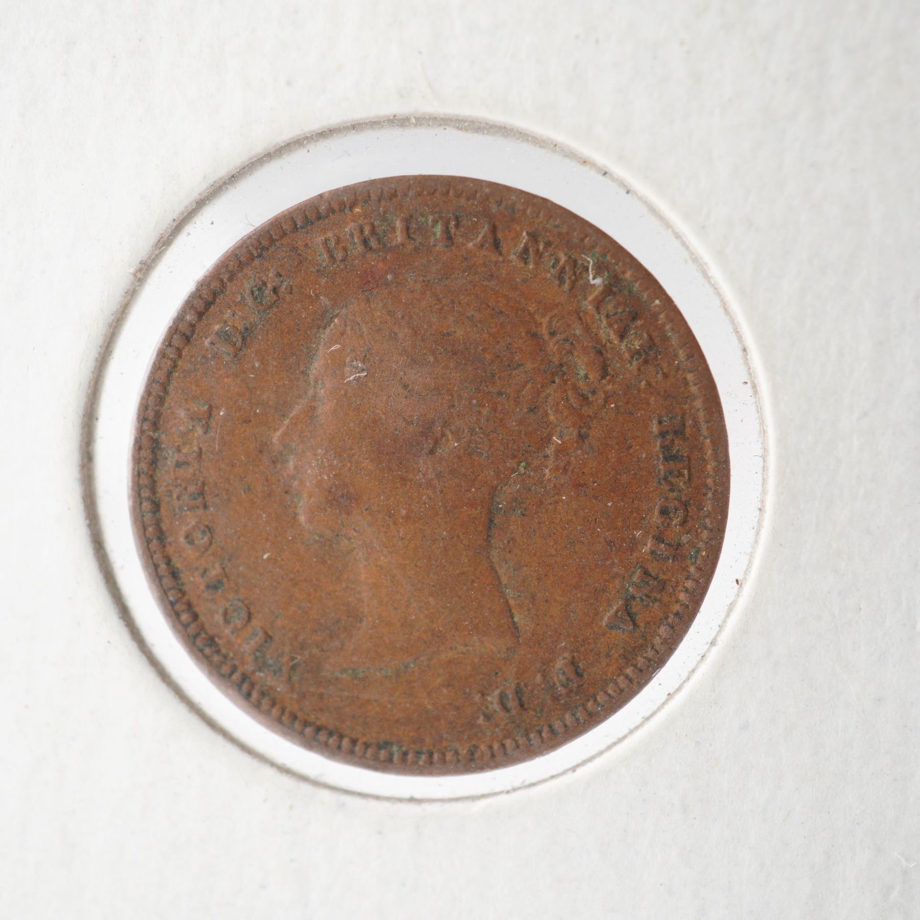 Lot 323 3pc 1854 to 1893 British Half Farthing, 3 Pence, & Gothic Type Florin
