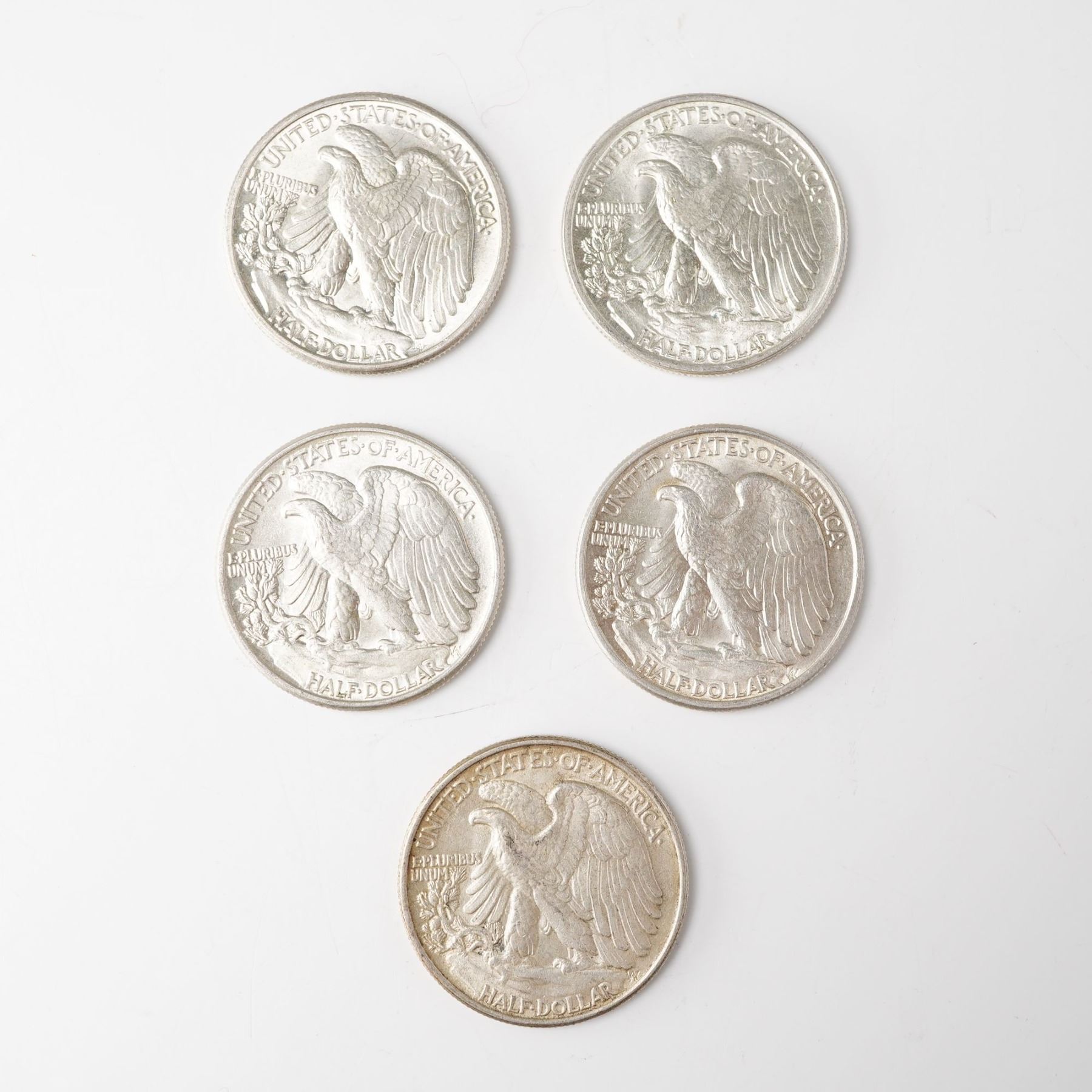 Lot 327 5pc 1946-1946 Walking Liberty Half Dollar Coins