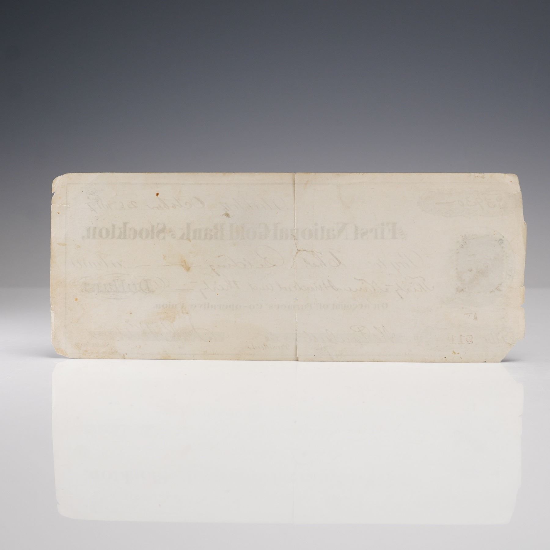 Lot 336 1877 First National Gold Bank of Stockton Check