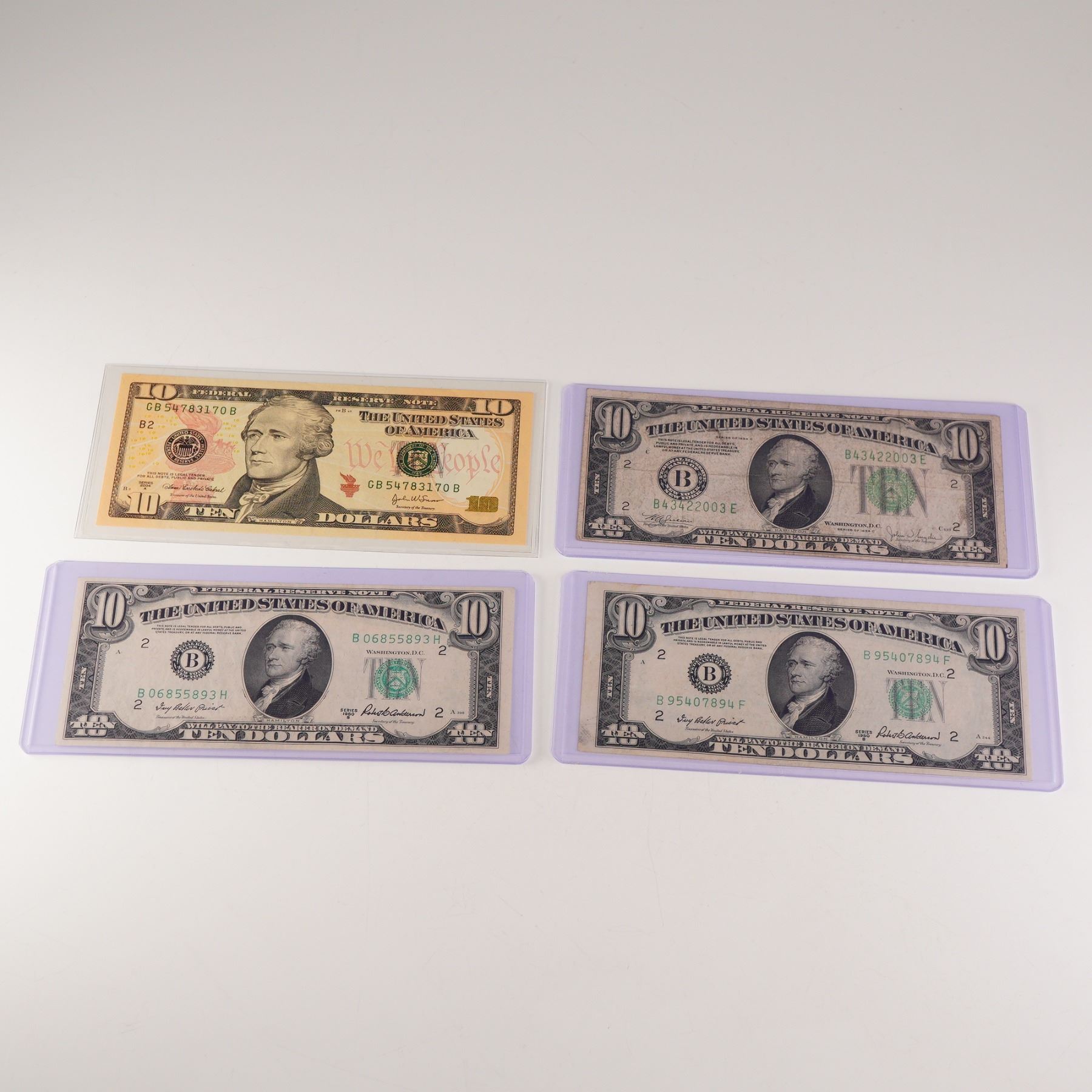 Lot 347 4pc 1934C, 1950B, 2004A U.S. Federal Reserve Ten Dollar Notes