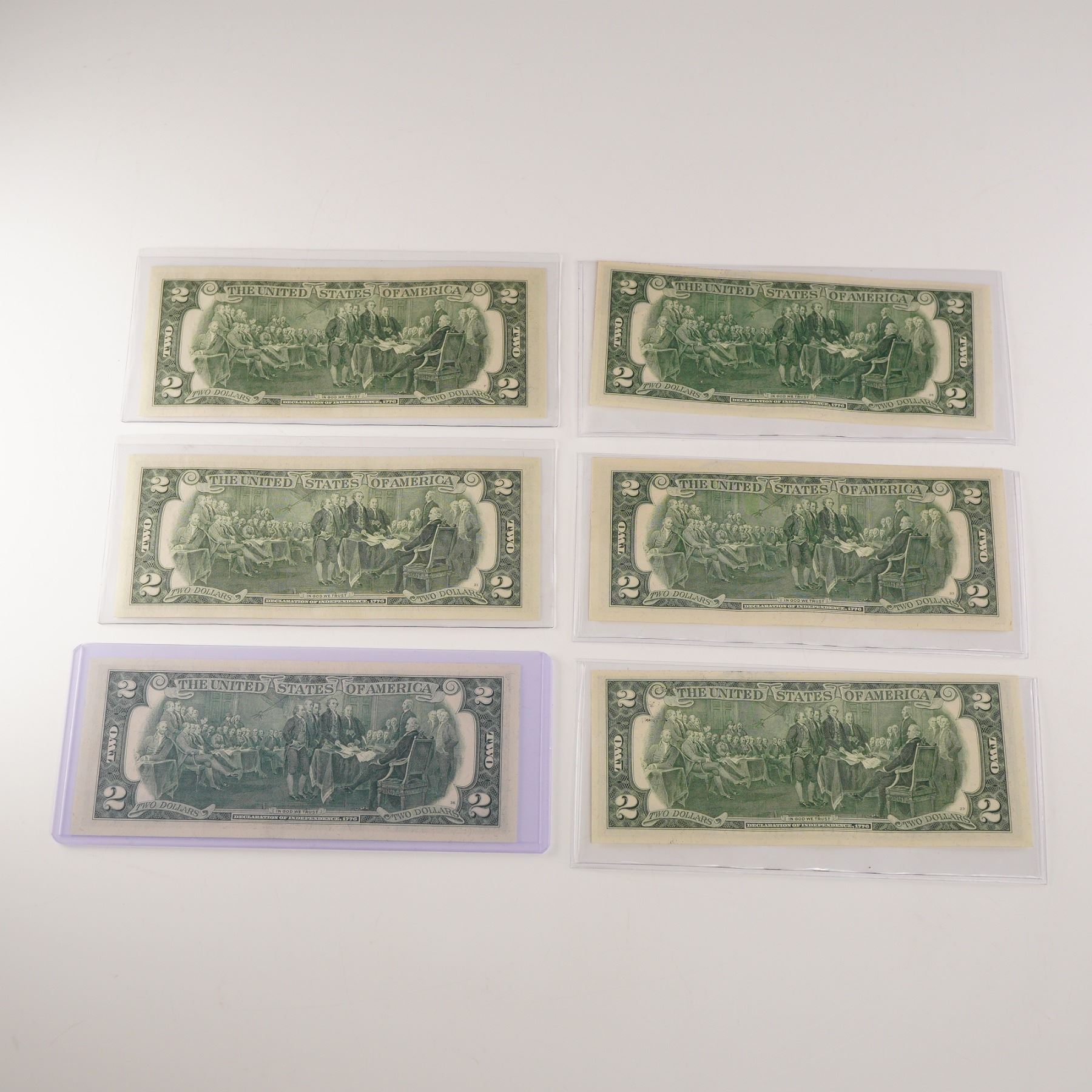 Lot 351 6pc 1976 U.S. Federal Reserve Two Dollar Notes including 1st Day Issues