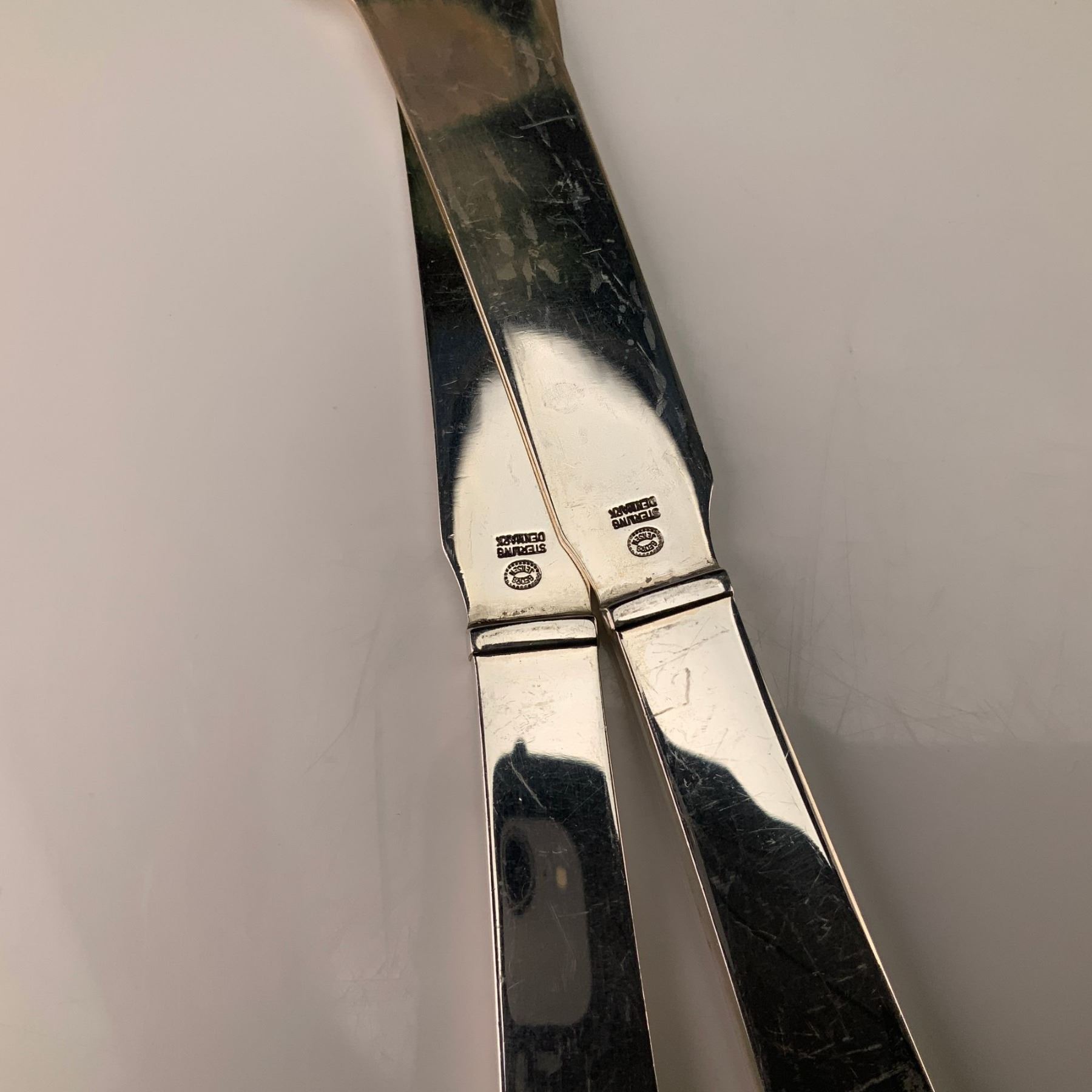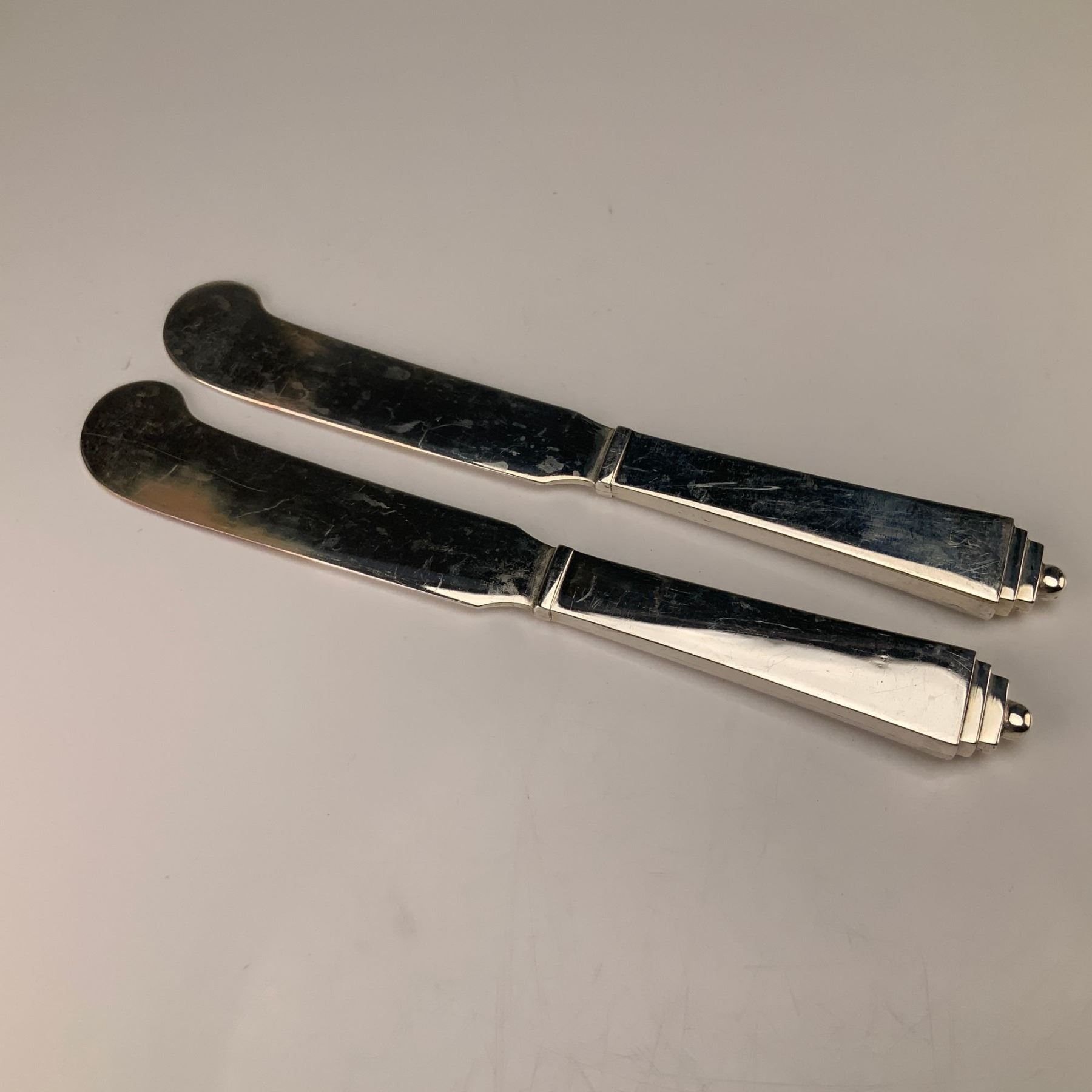 Lot 360 Pair of Georg Jensen Denmark Sterling Silver Pyramid Butter Knives