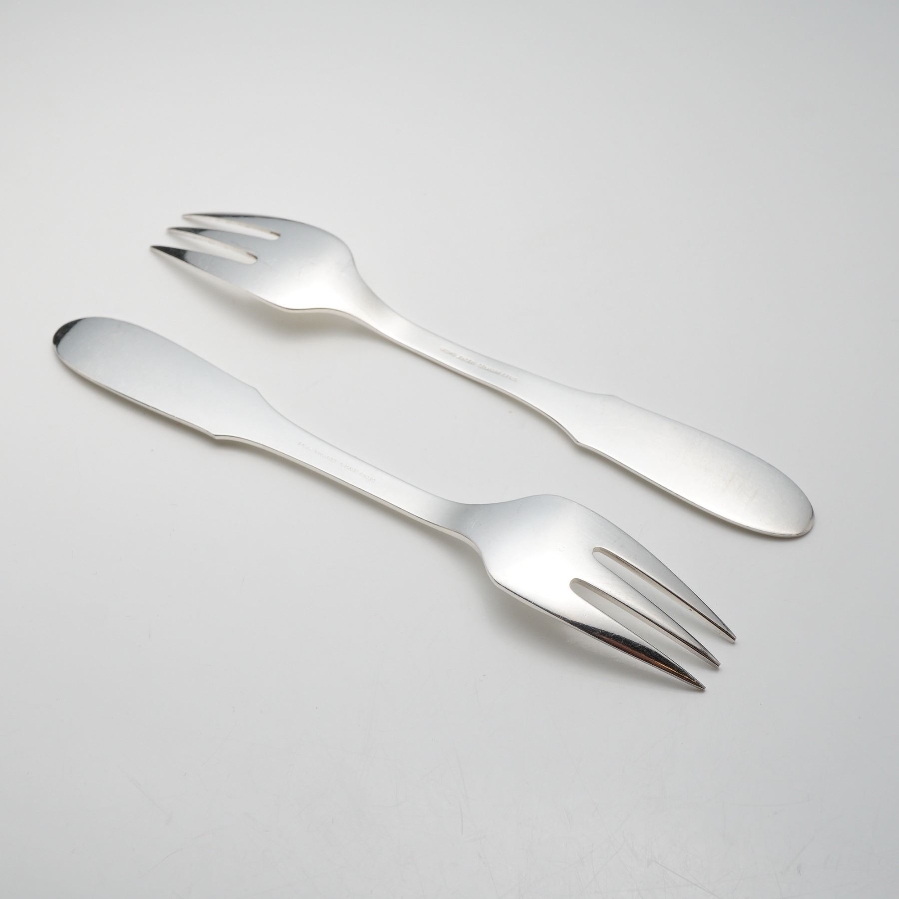 Lot 365 A Pair of Georg Jensen Denmark EPNS Mermaid Pattern Hammered Fish Forks