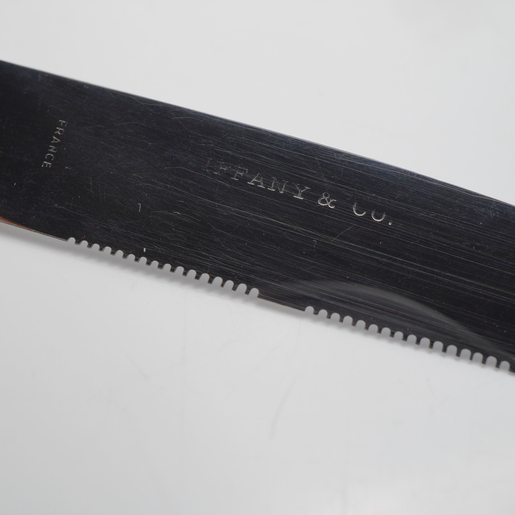 Lot 402 5pc Assorted Silverplate and Sterling Silver Serving Utensils including Tiffany and Co. Serrated Kni