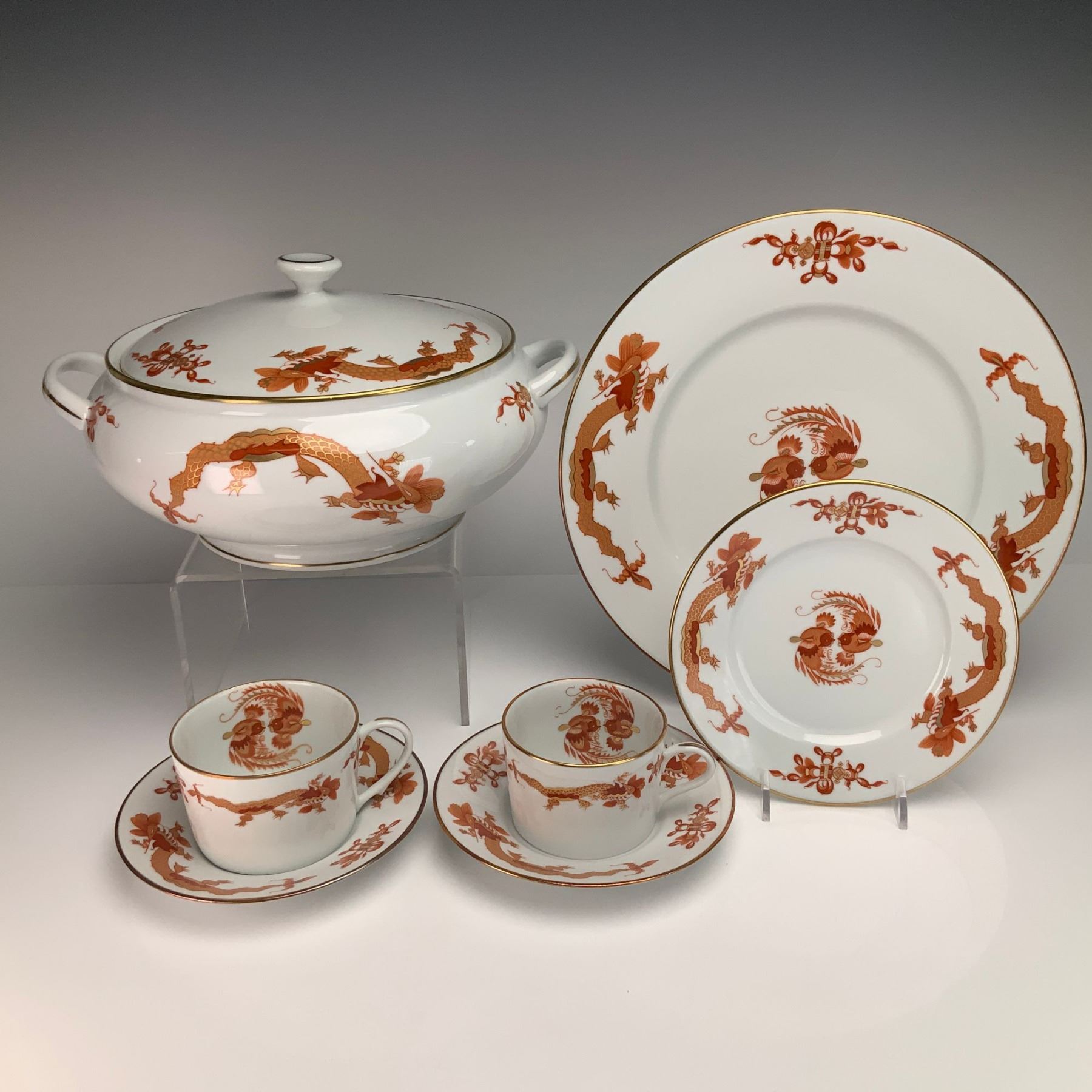 Lot 403 7pc Raynaud Limoges Porcelain Red Dragon Dinnerware Set