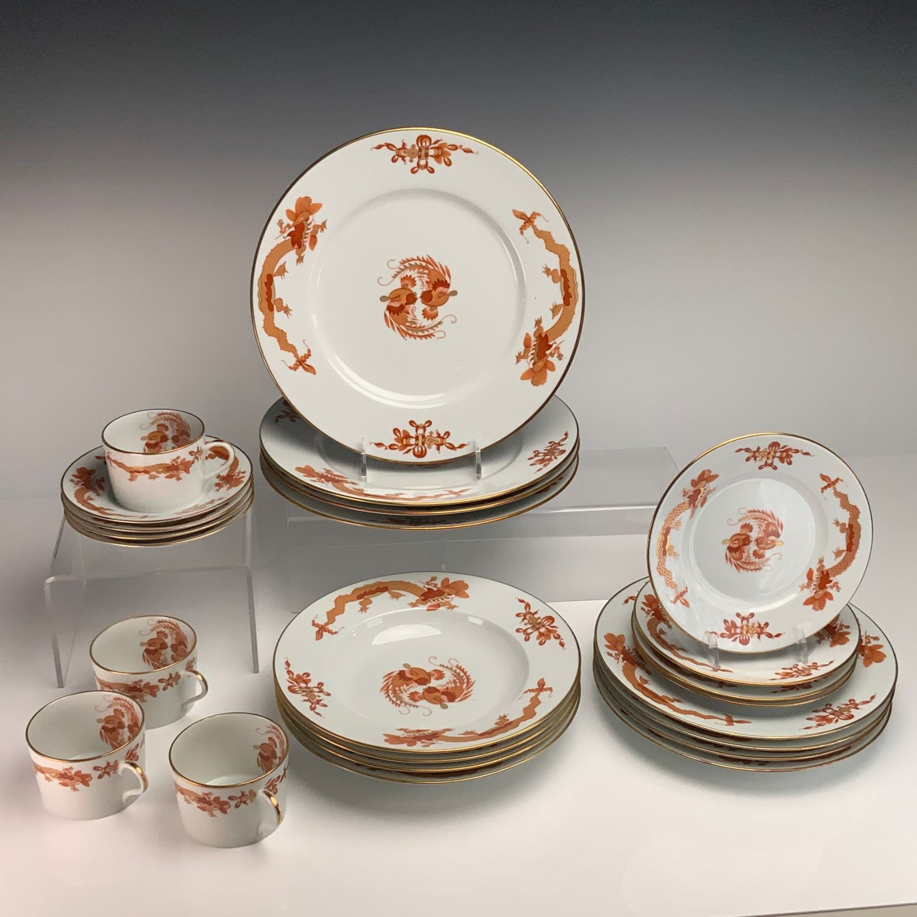 Lot 404 24pc Raynaud Limoges Red Dragon Dinnerware Service Set