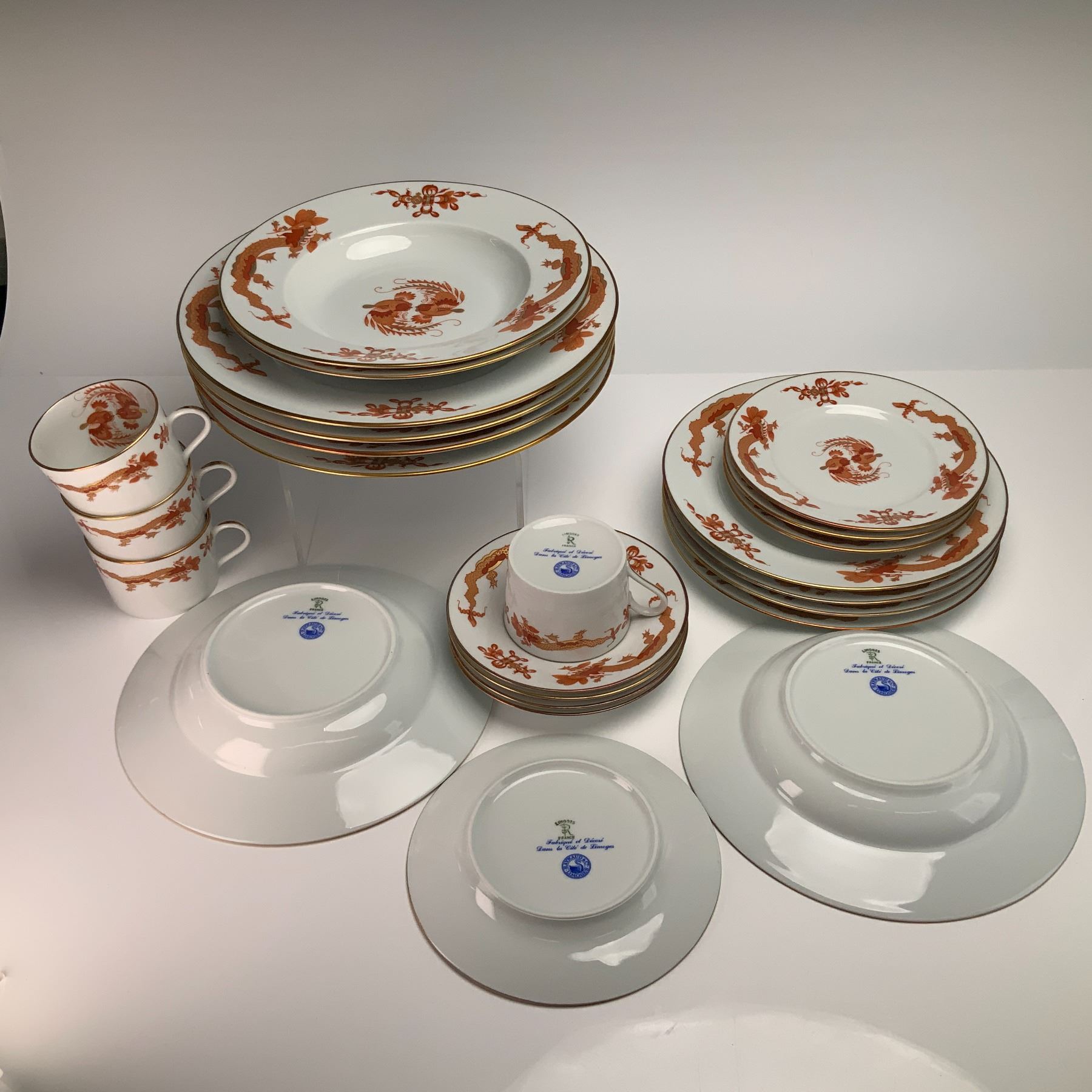 Lot 405 24pc Raynaud Limoges Porcelain Red Dragon Dinner Ware Set