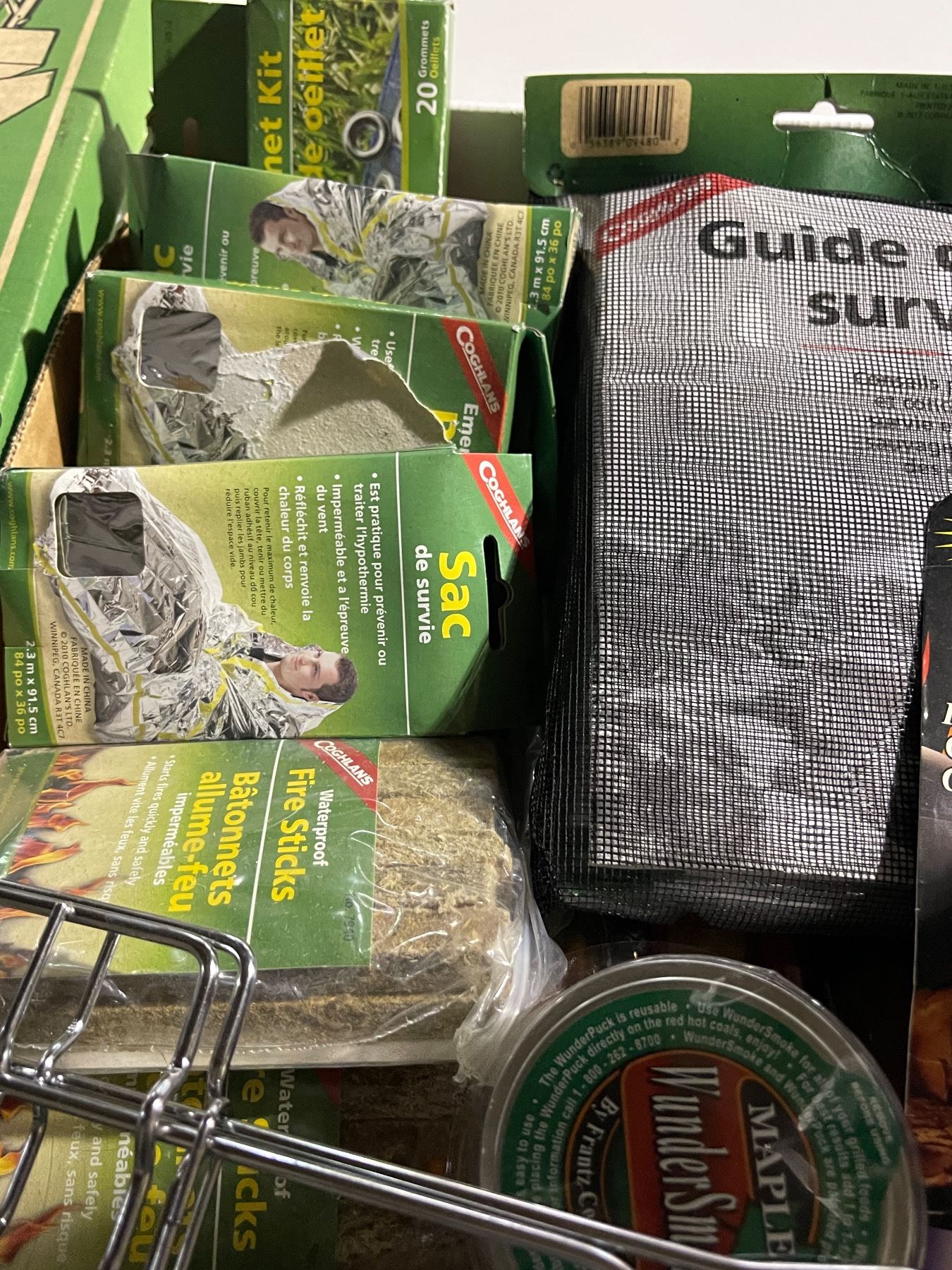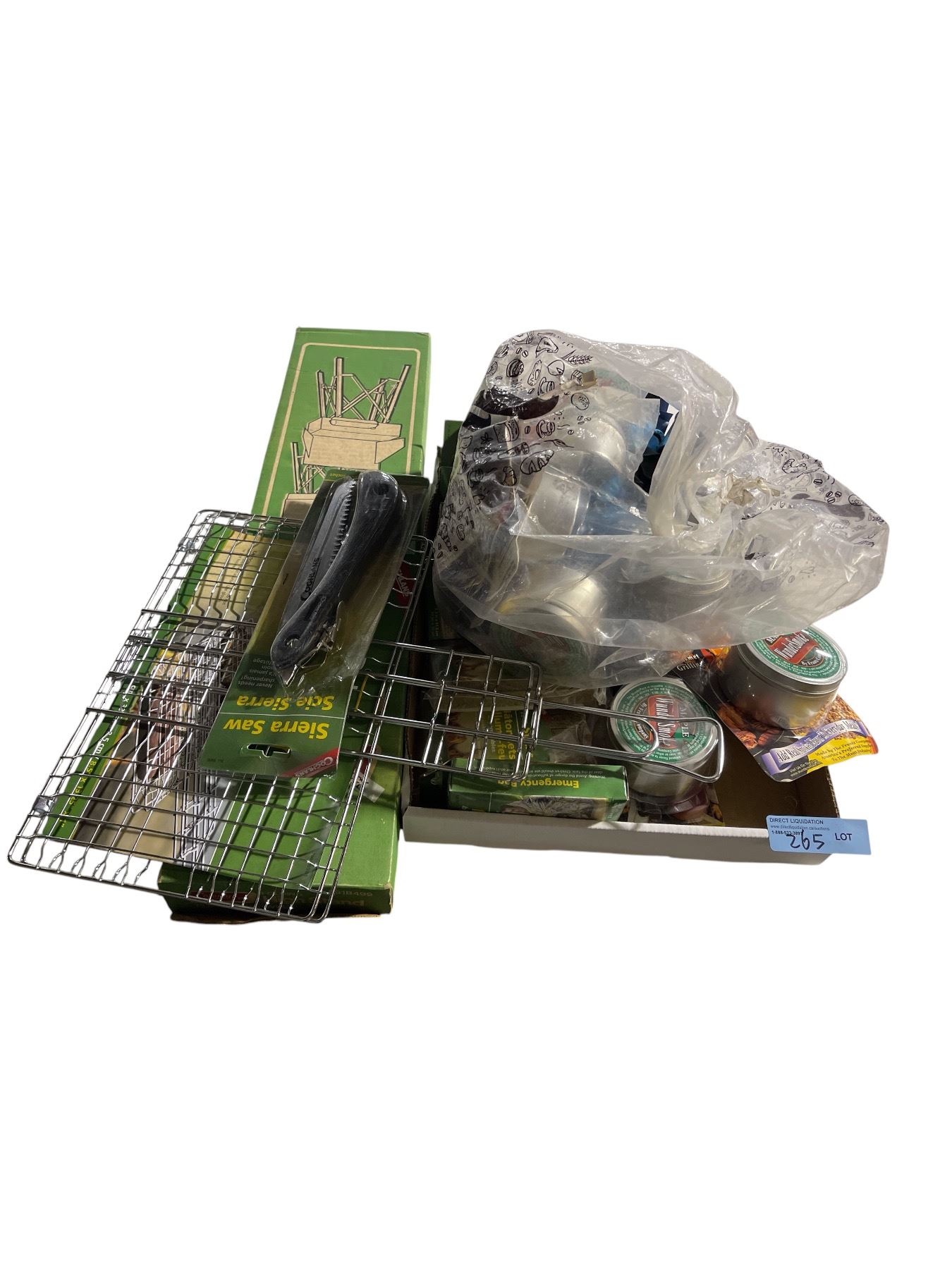 Lot 265 Assorted Camping & Grilling Gear: Saw Scie, Survival Gear, WunderSmoke Wood Chips, and More