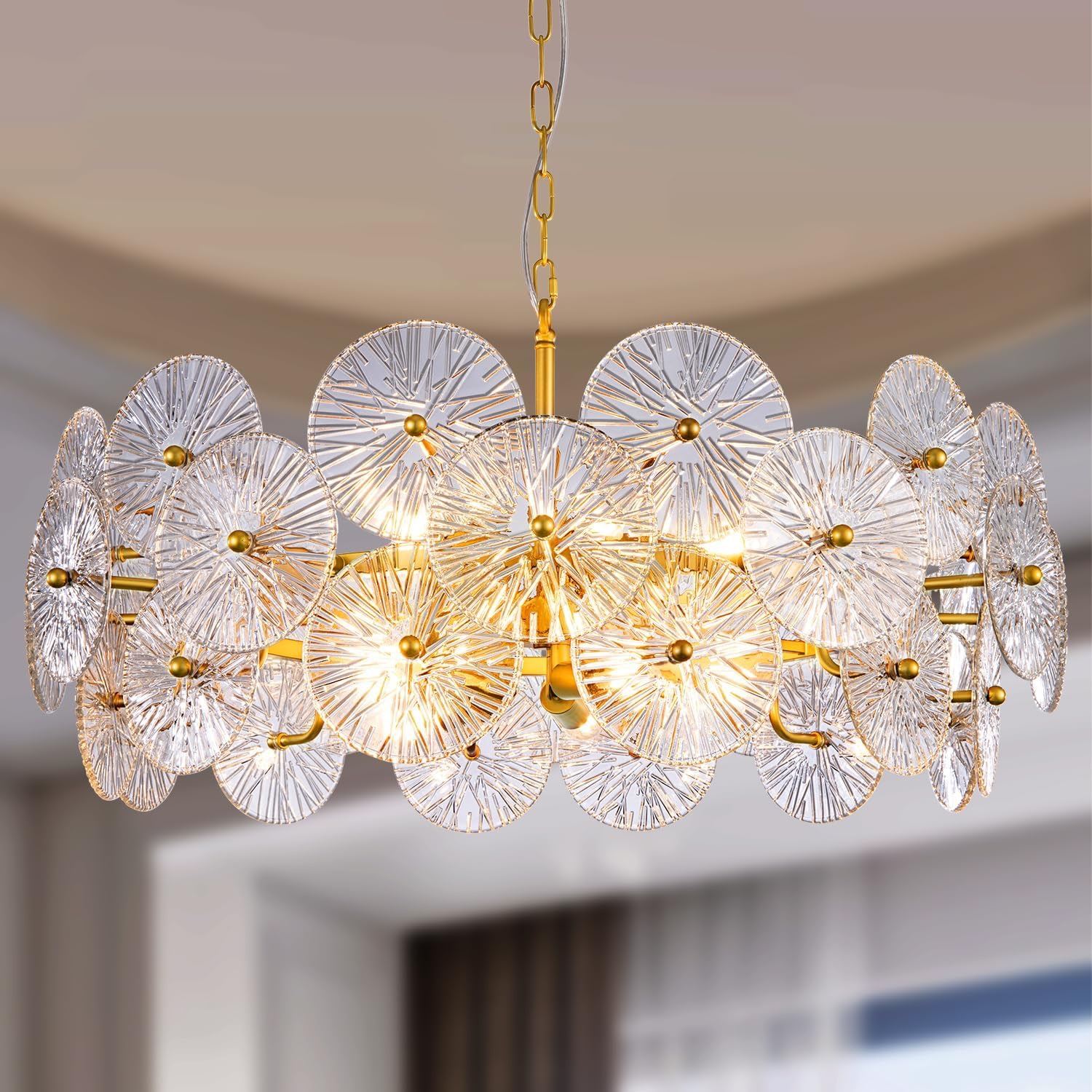 New - Tochic Modern Glass Chandelier (DS-WWC083-Gold-02) - From Set Dec
