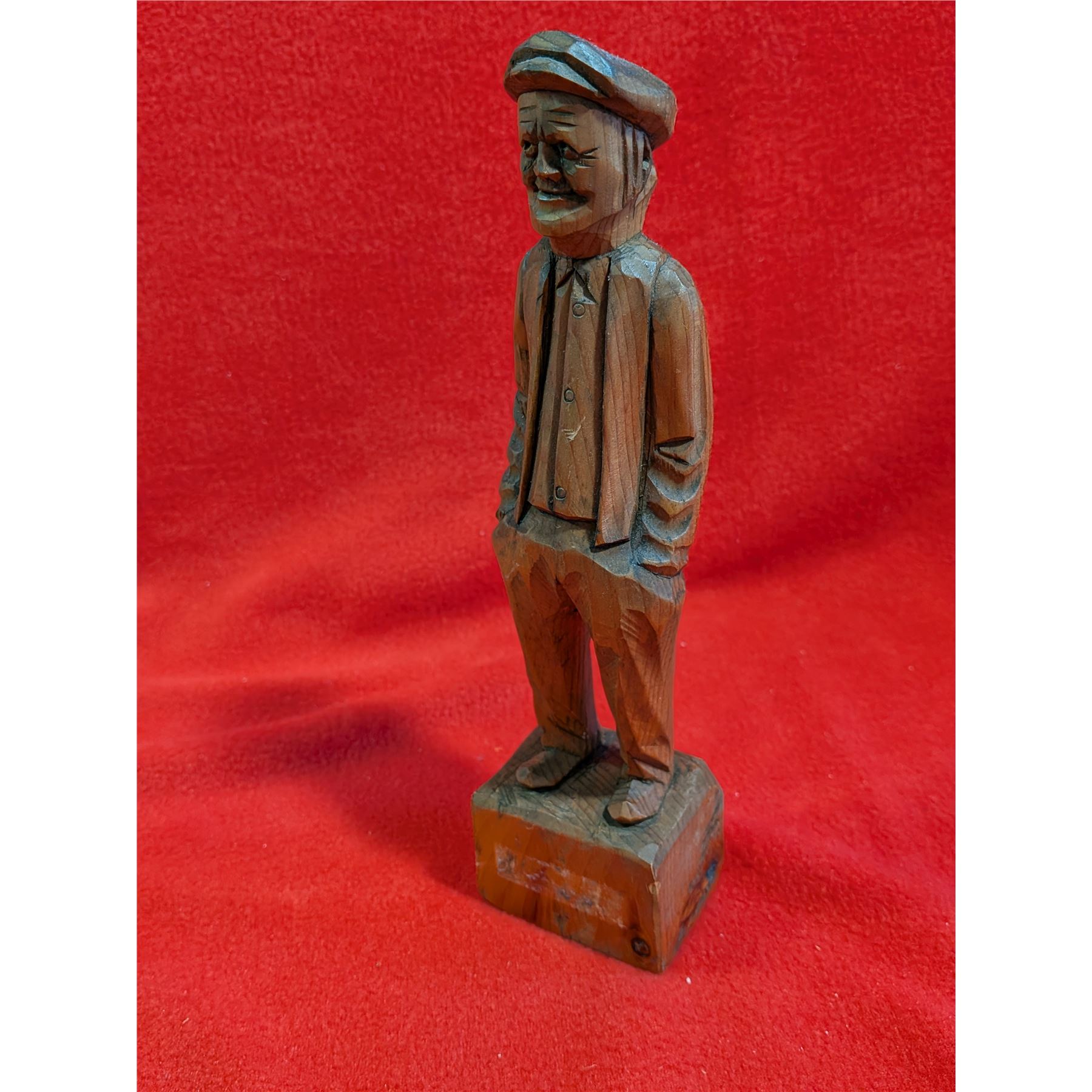 Vintage hand-carved wooden figure, likely representing a Québécois folk art "old salt" or farmer.