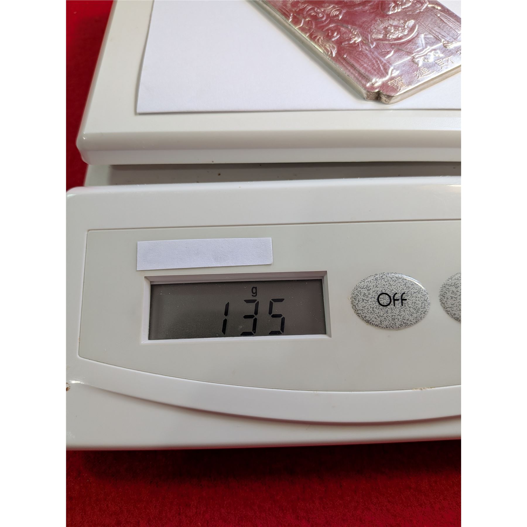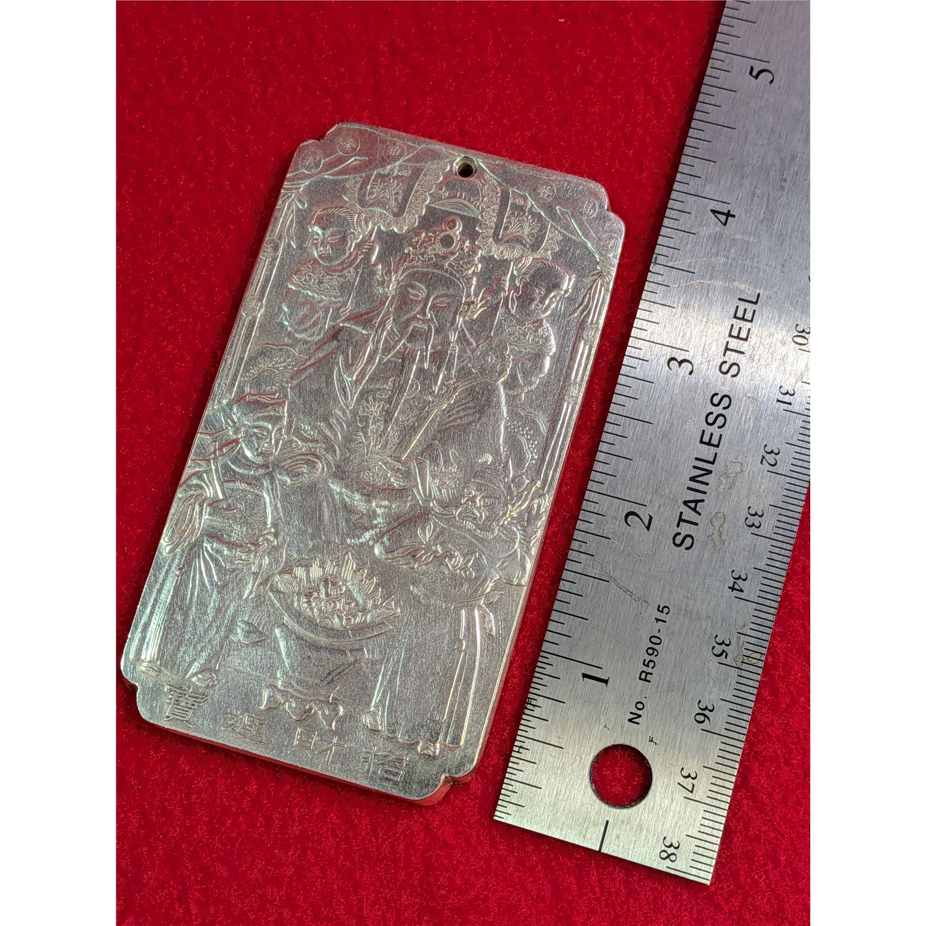 Antique Chinese silver 135 gram amulet or silver bar, featuring the Chinese God of Wealth.