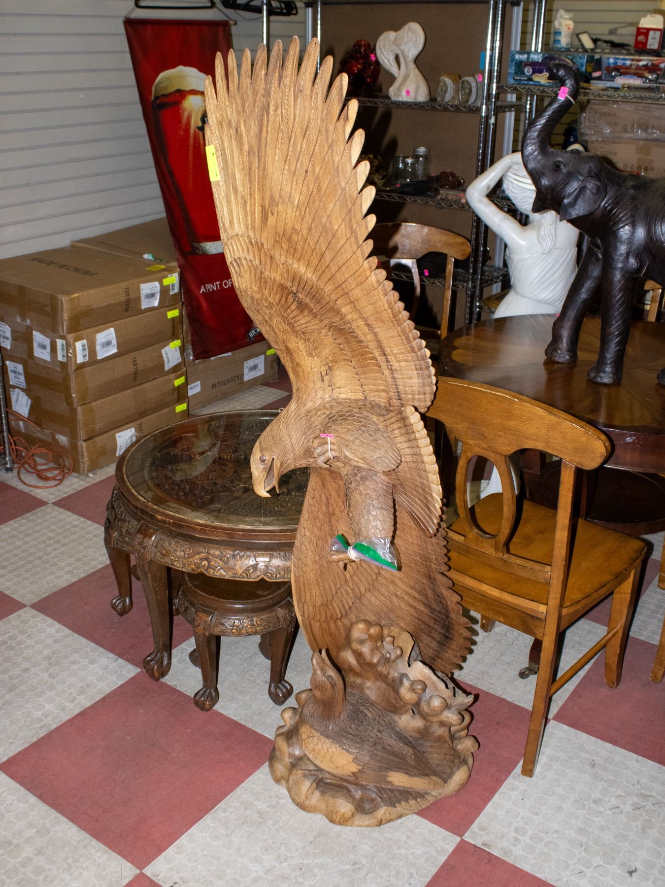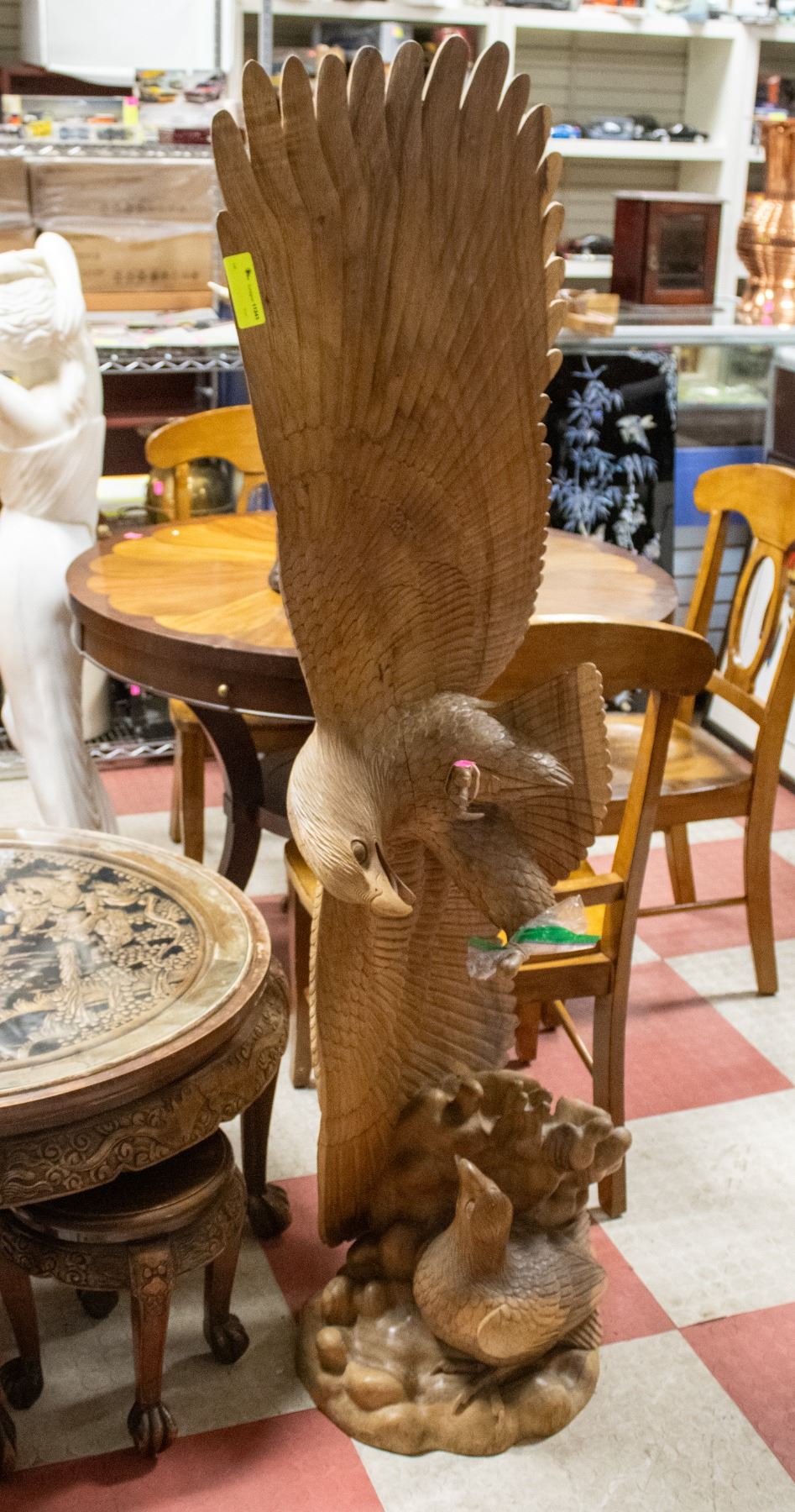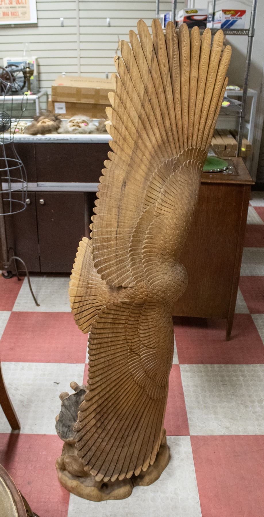 Lot 9552 LARGE HAND CARVED WOODEN FLYING EAGLE SCULPTURE