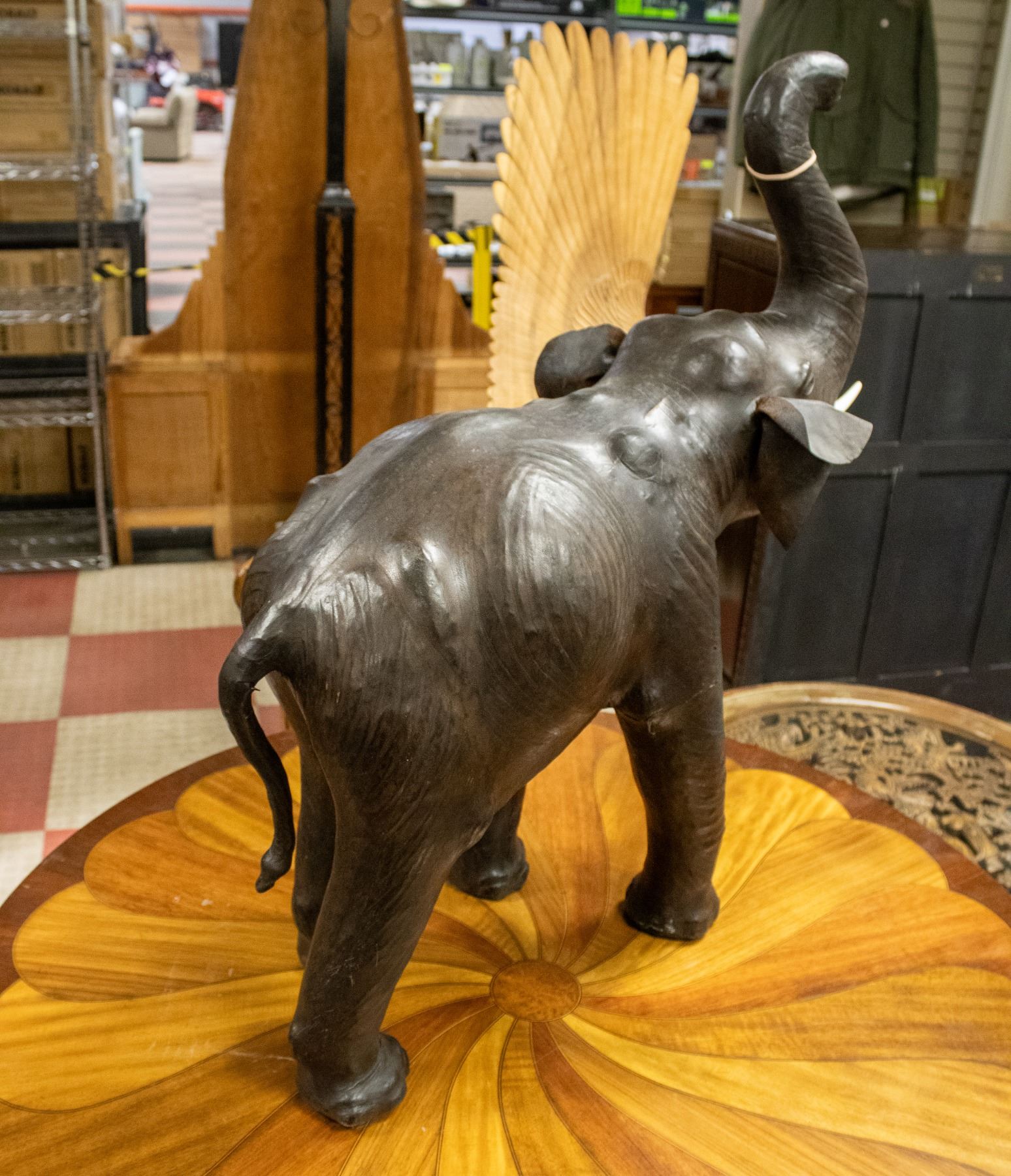 Lot 9553 VINTAGE PRESSED LEATHER TRUNK UP LUCKY ELEPHANT