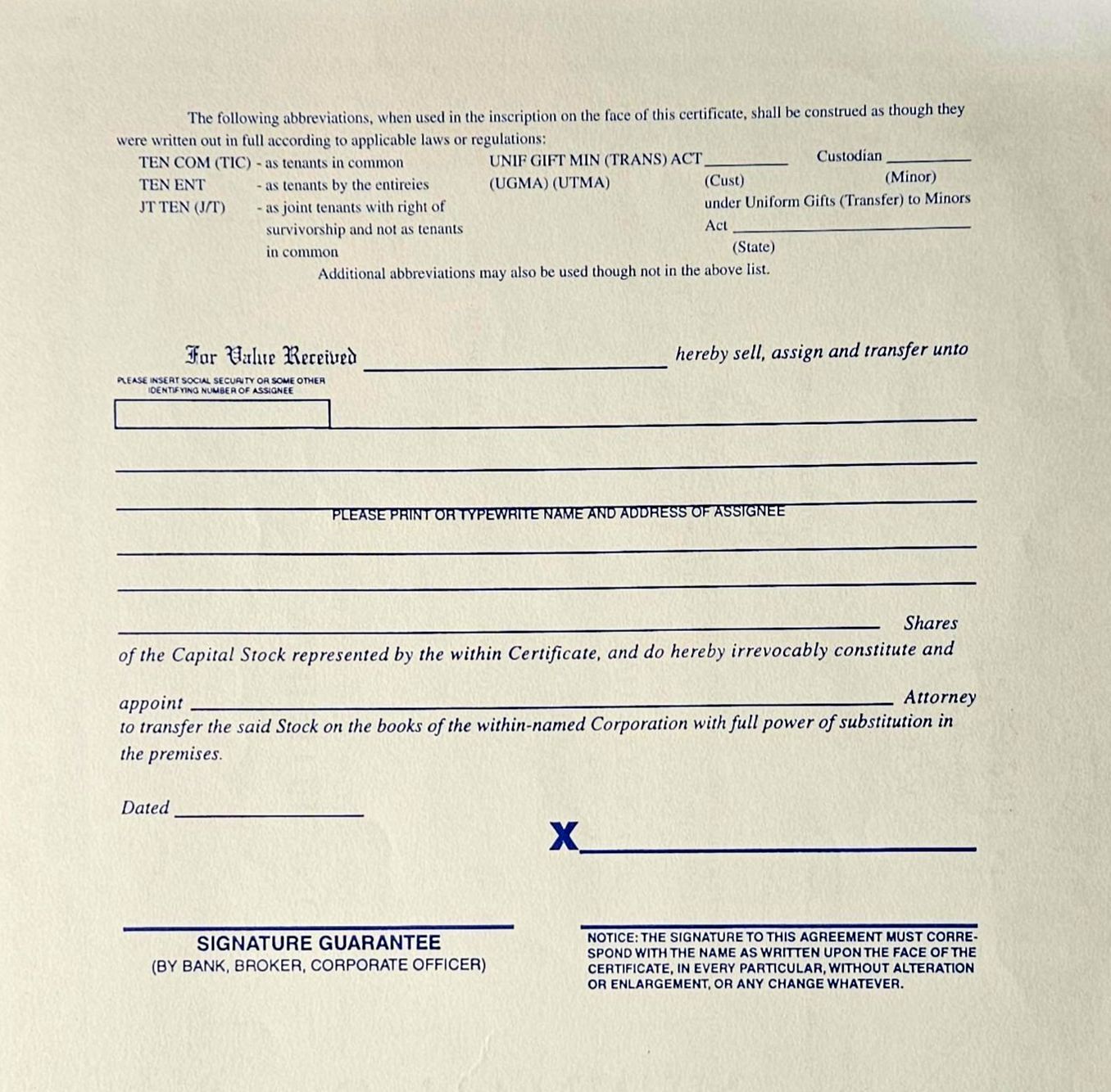 Vintage stock certificate with its authenticity papers.