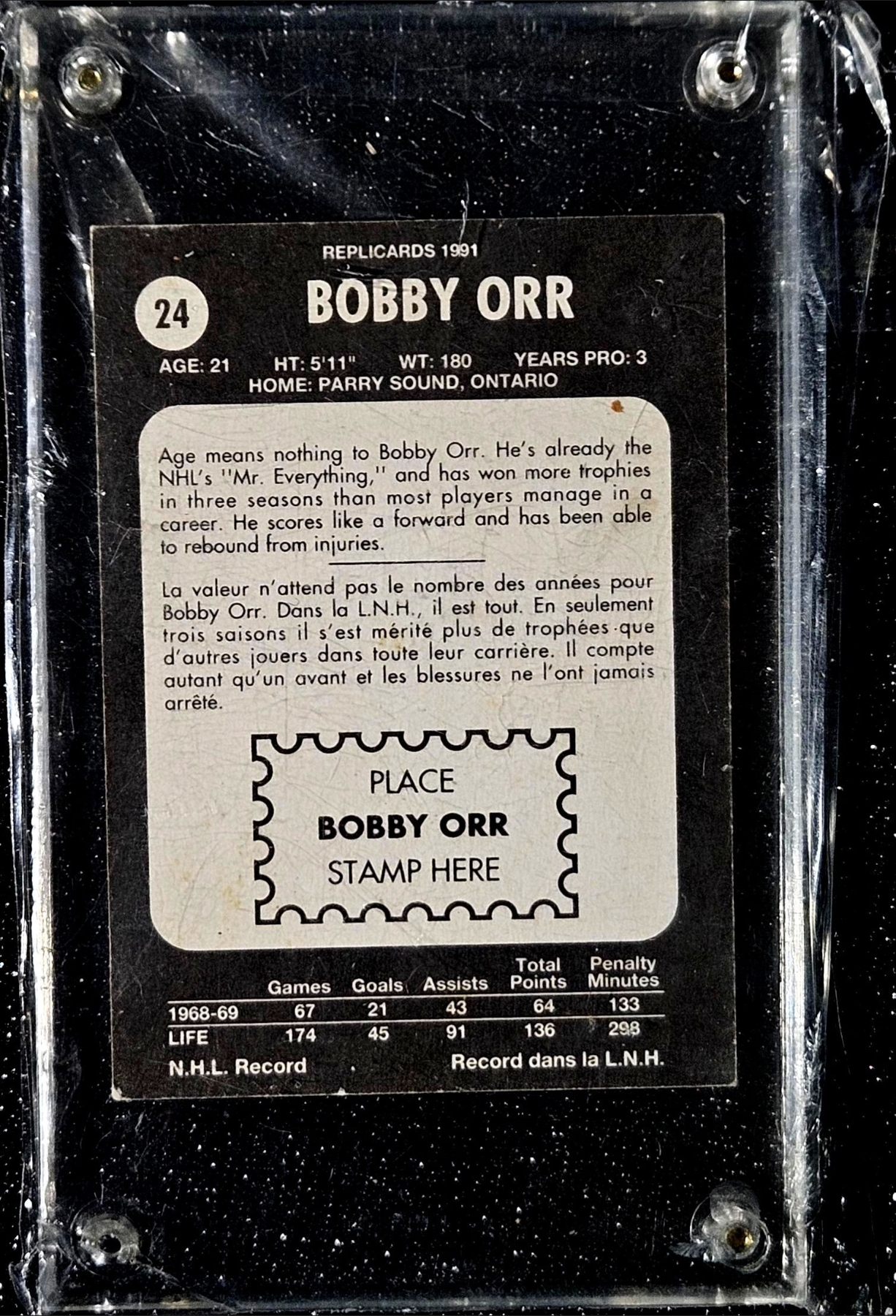 Lot 175 Bobby Orr #01 - 1991 Topps Replicards Base Set Trading Card