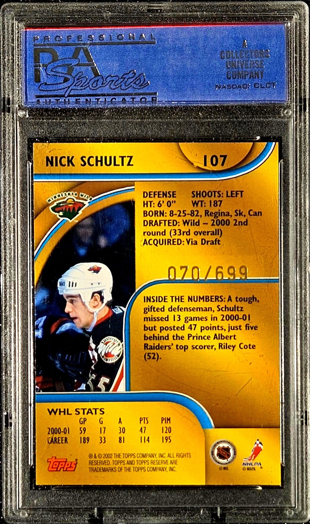 Lot 178 Nick Schultz (Graded PSA9) - 2001 Topps Reserve Trading Card.